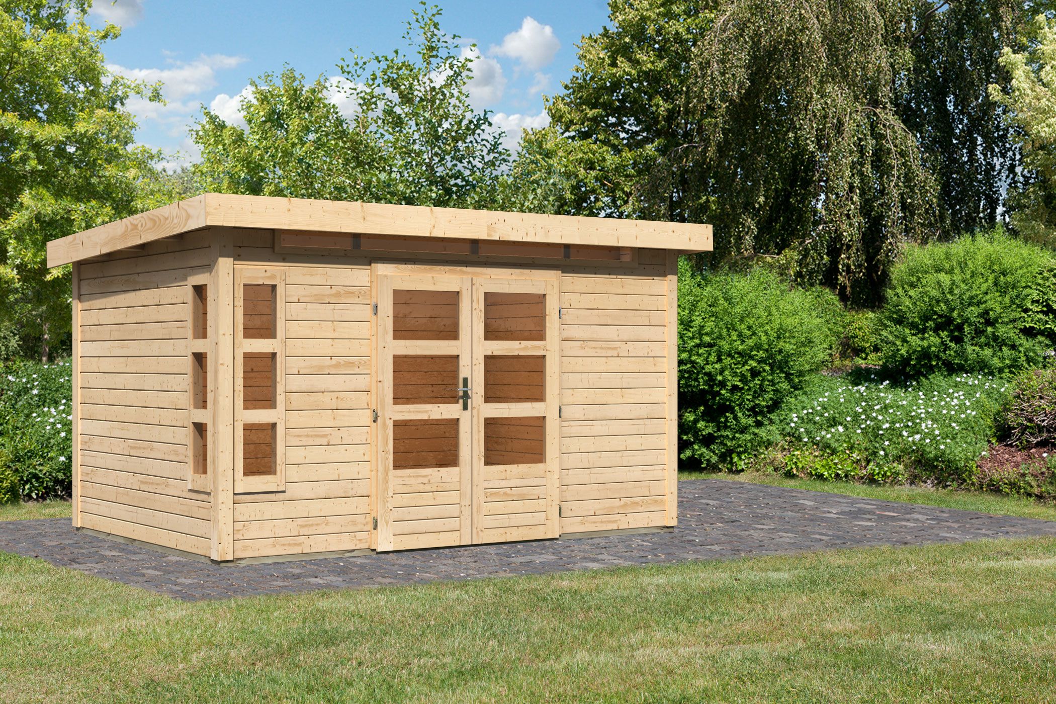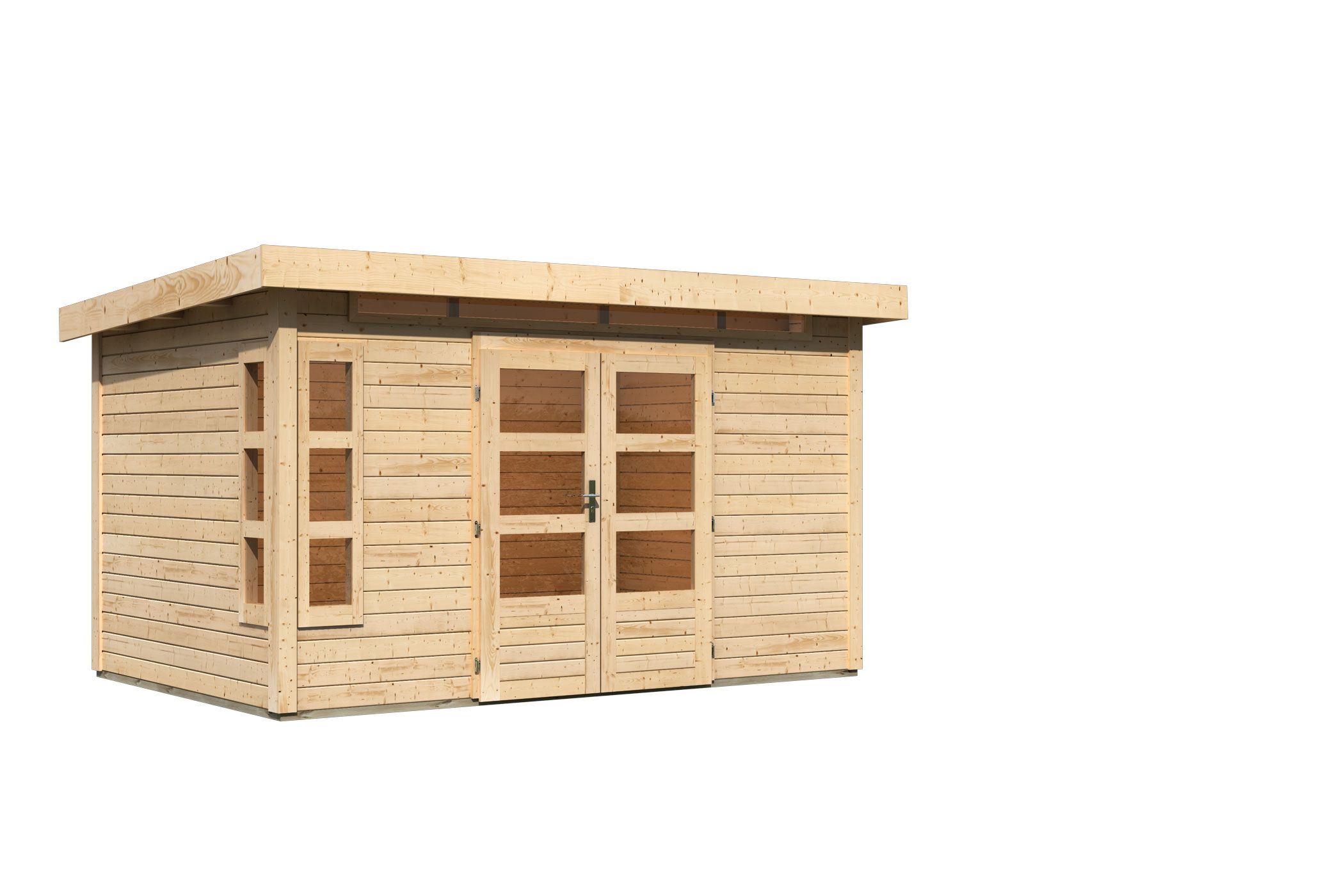 - Gartenhaus aus hochwertiger nordischer Fichte mit wasserabweisender Profilierung