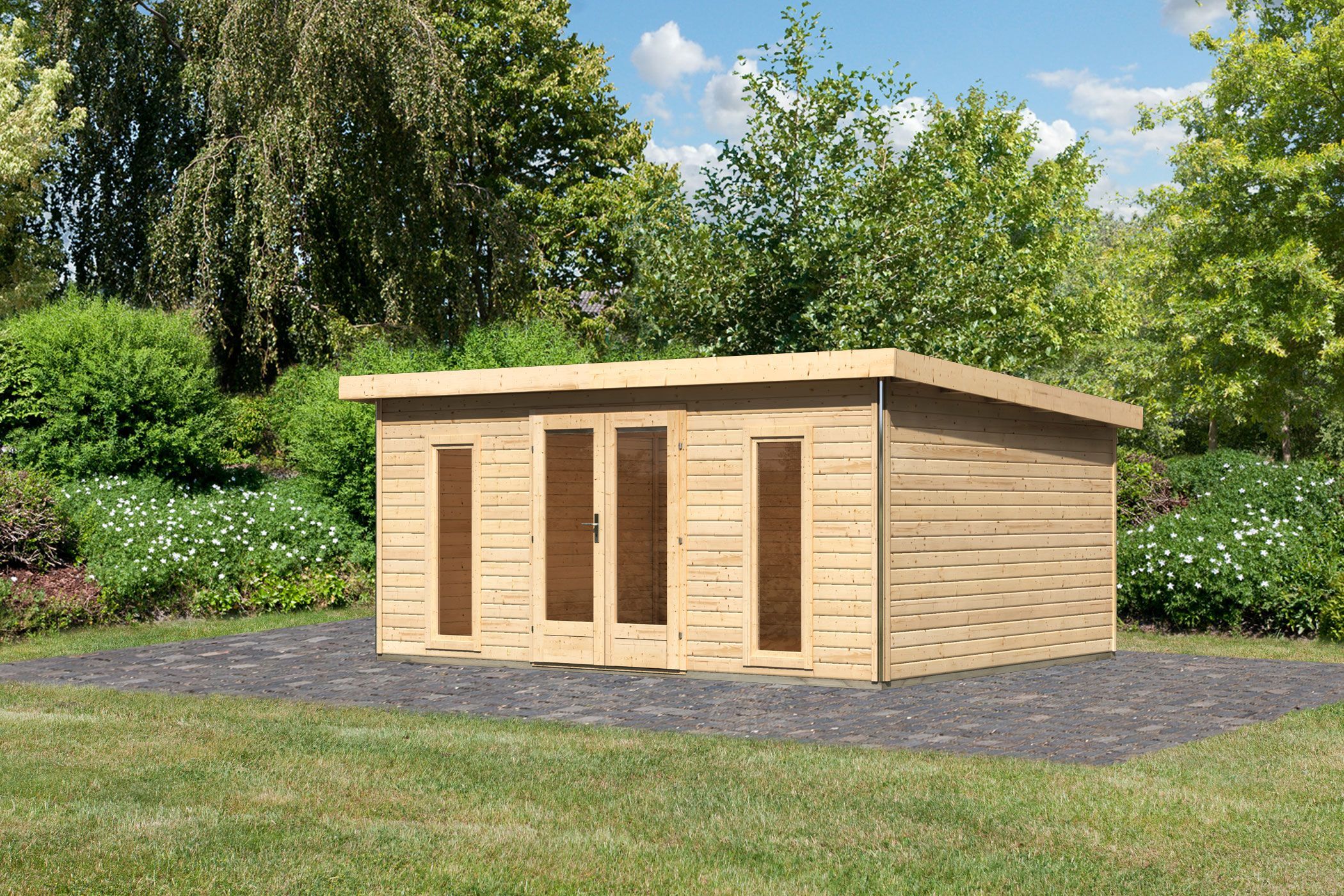 Hinweis: Fußboden und Dacheindeckung optional erhältlich (nicht im Lieferumfang des Hauses enthalten)!