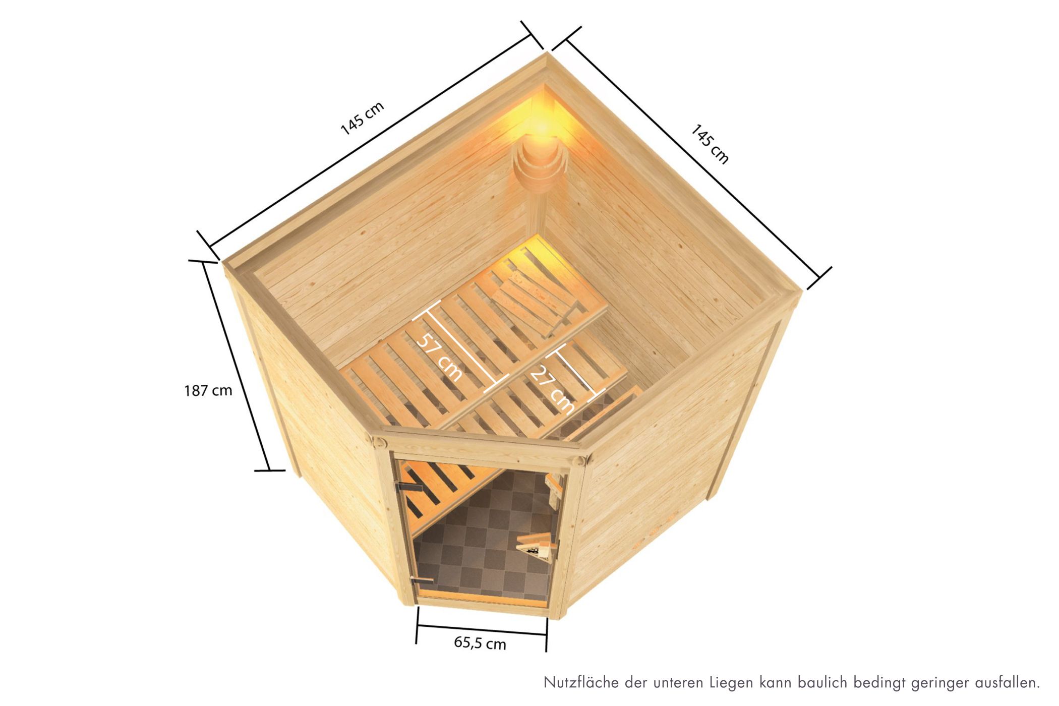 Karibu Massivholzsauna "Sauna Antonia" Mini Sauna 2 Personen ohne Ofen