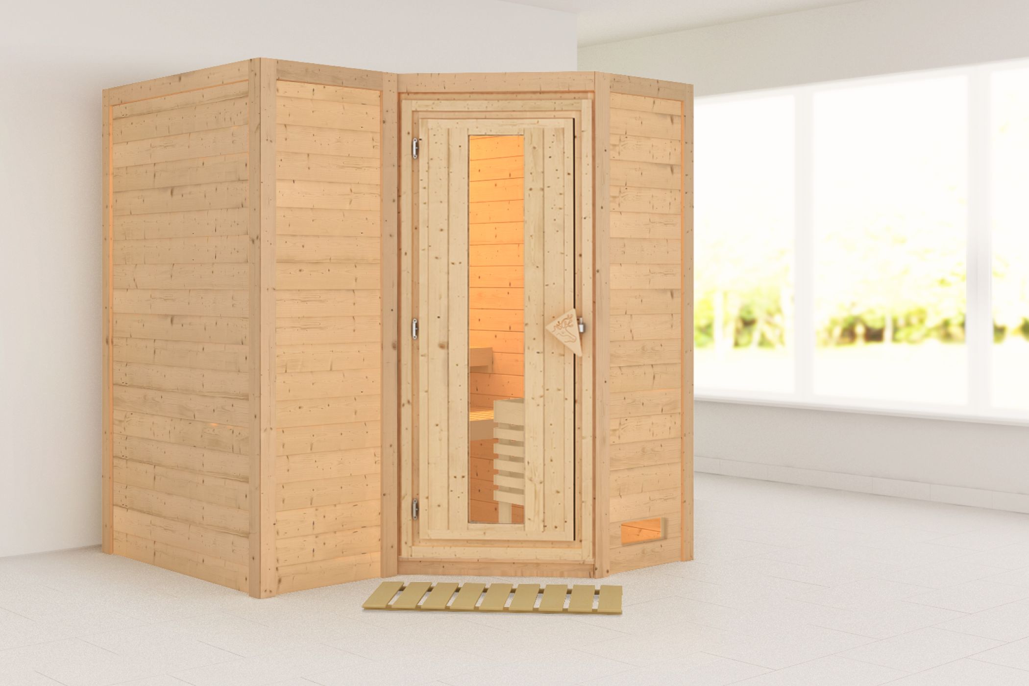 Karibu Massivholzsauna "Sauna Sahib 1" 4 Personen ohne Ofen Holztür