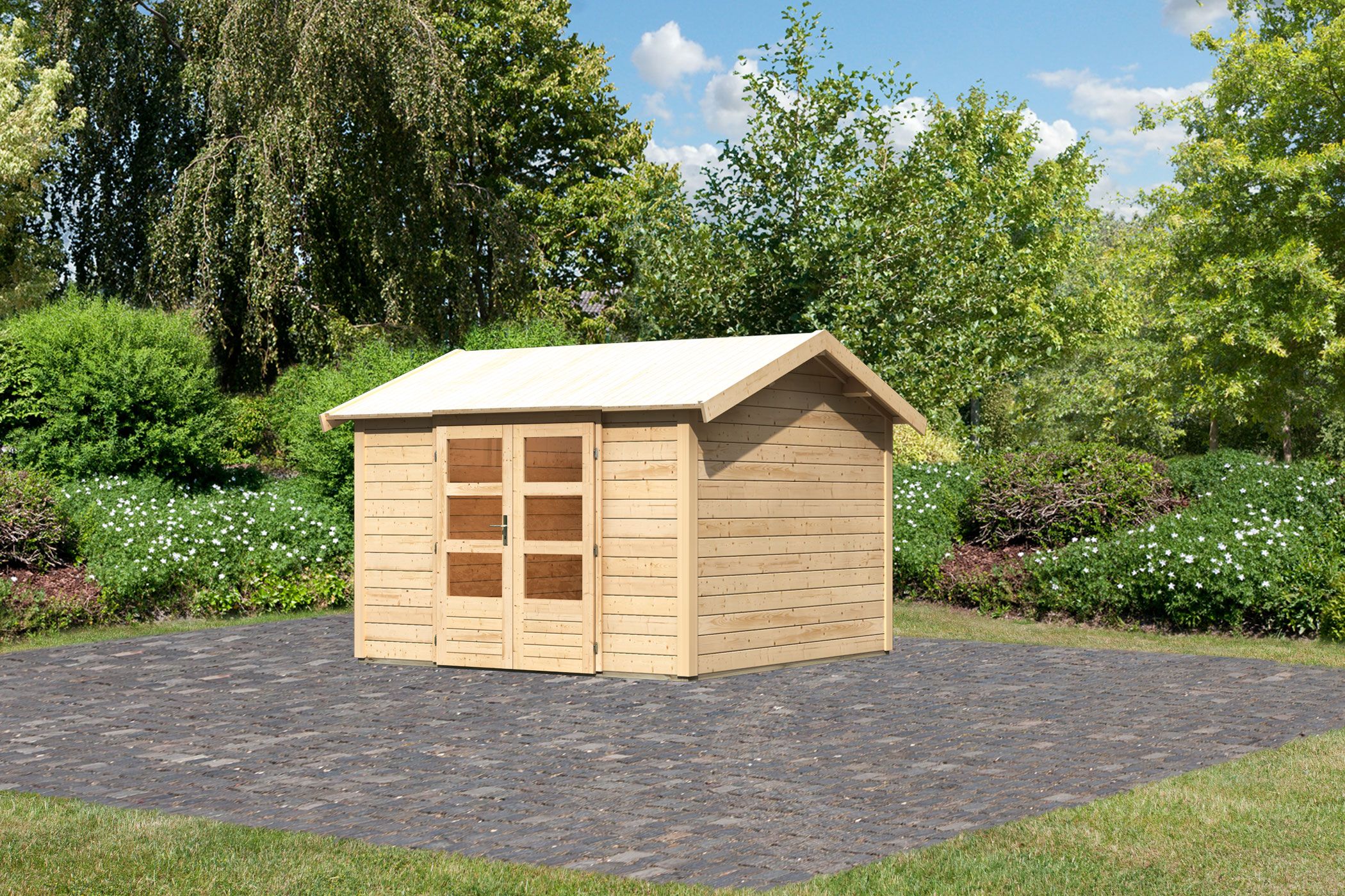 - Gartenhaus aus hochwertiger nordischer Fichte mit wasserabweisender Profilierung