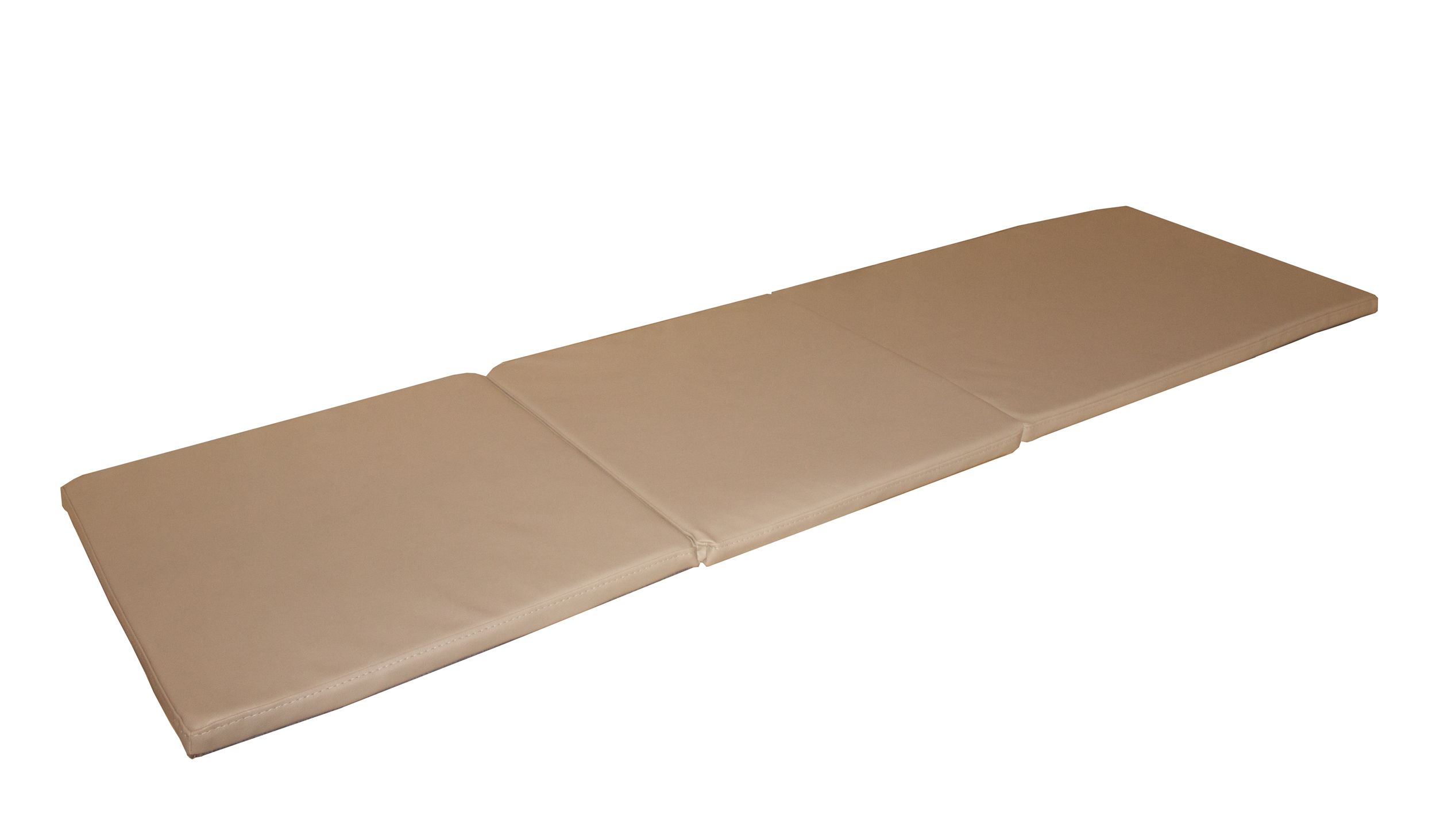 Die klappbare Bankauflage besteht aus einem strapazierfähigen Material, dass sich im Medizinbereich mehrfach bewährt hat. Der antibakterielle Bezug ist schweißbeständig und pflegeleicht. Zusätzlich wurde die Polsterauflage mit einem praktischen Reißverschluss und einer Antirutschmatte an der Unterseite versehen.