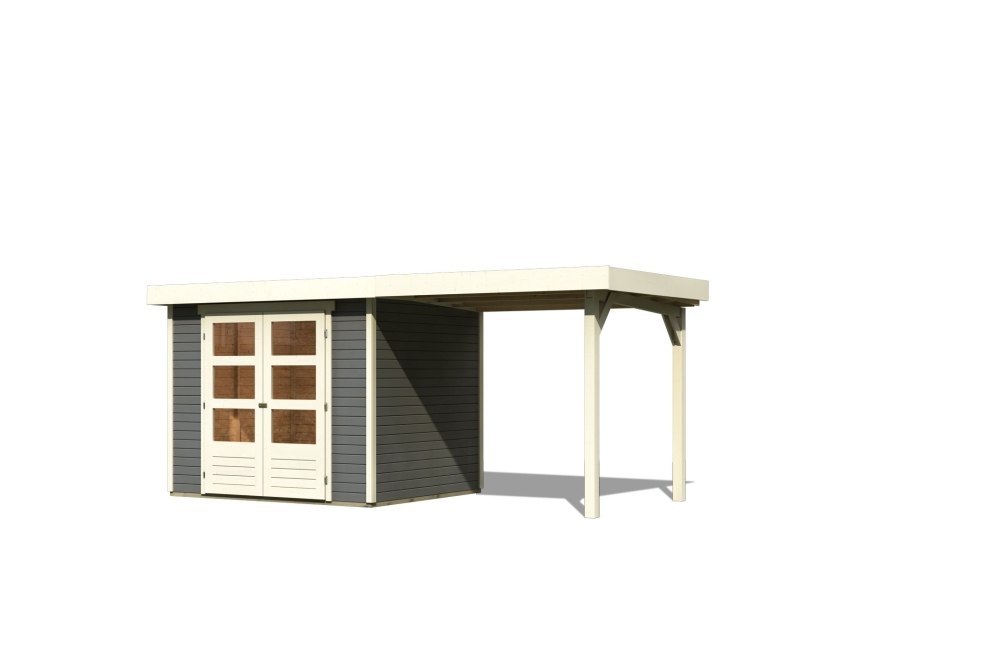 Gartenhaus Askola 3 - der Akzent in Ihrem Garten. Das 19mm Systemhaus aus nordischer Fichte im einfachen Steck- und Schraubsystem ist in der Farbe Terragrau, Anthrazit und in Naturbelassen erhältlich.