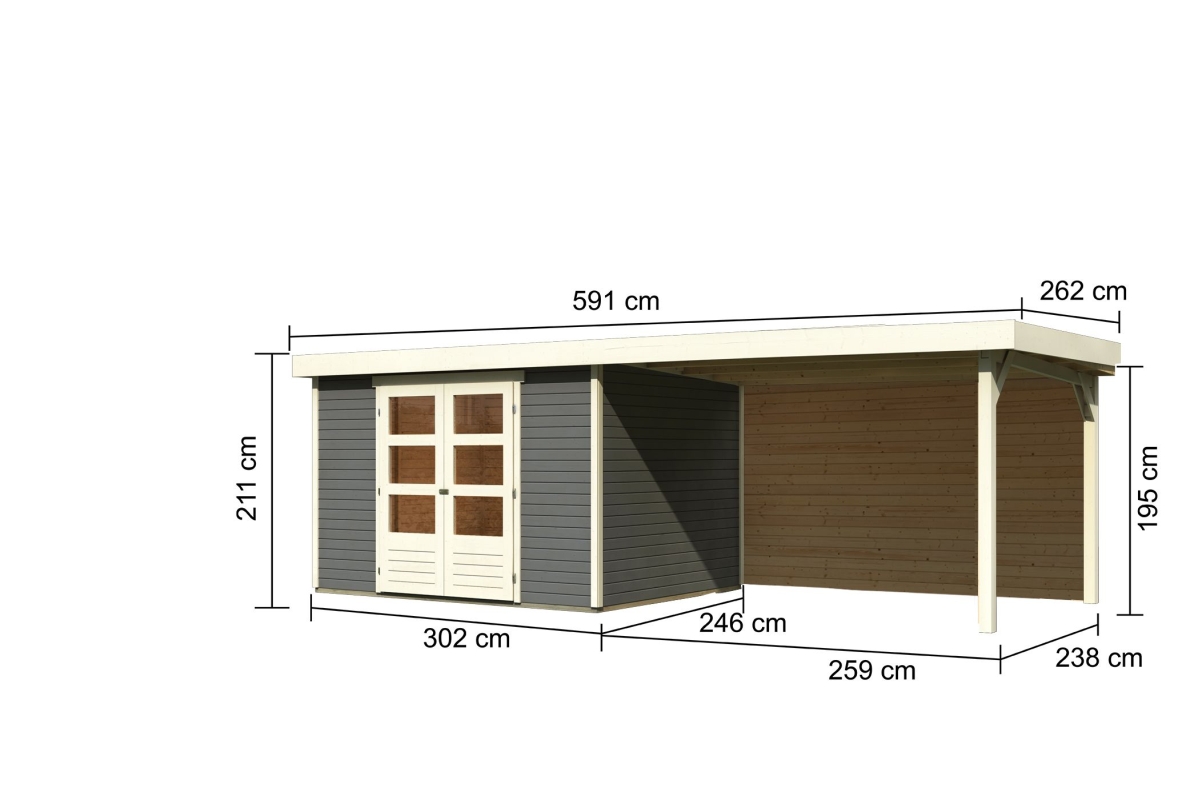Karibu großes Gerätehaus “Askola 5” Flachdach mit Anbau/Terrasse modern aus Holz in Terragrau
