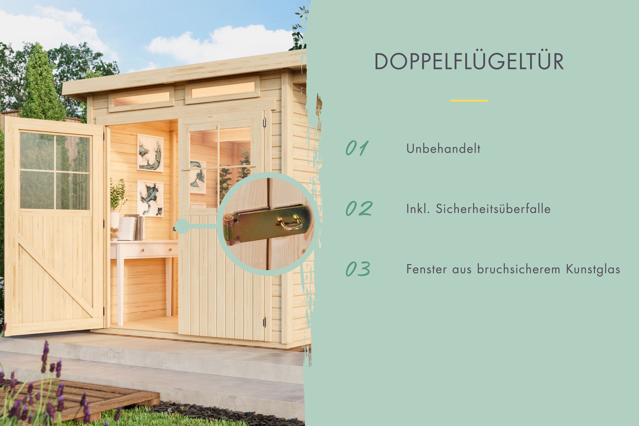 Hinweis: Fußboden und Dacheindeckung optional erhältlich (nicht im Lieferumfang)