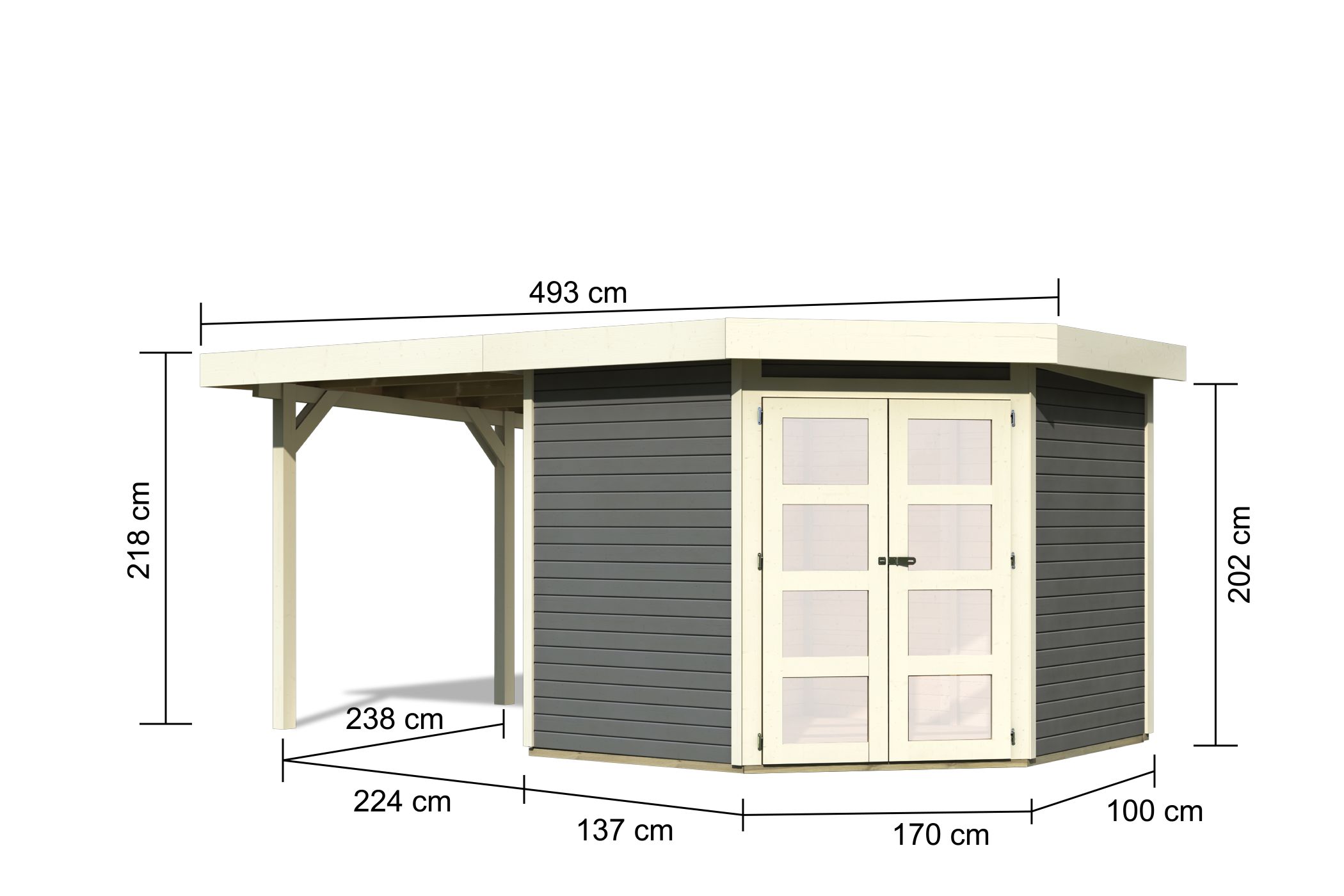 Hinweis: Fußboden und Dacheindeckung optional erhältlich (nicht im Lieferumfang)