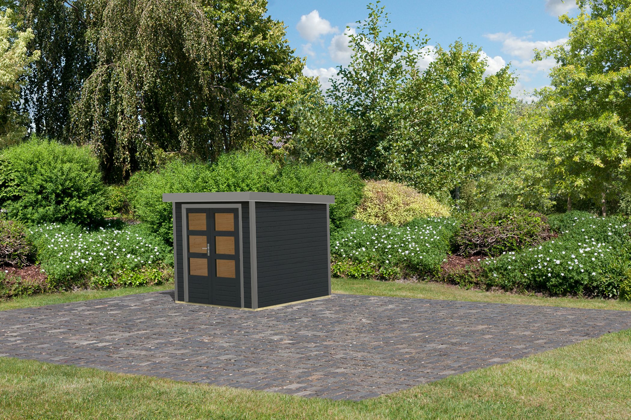 Erleben Sie die perfekte Vereinigung von Holz und Metall mit dem Hybrid-Gartenhaus von Karibu. Genießen Sie hochwertige Materialien, geringe Wartung, Witterungsbeständigkeit, Individualisierbarkeit, einfache Montage, Langlebigkeit und ein modernes Design.