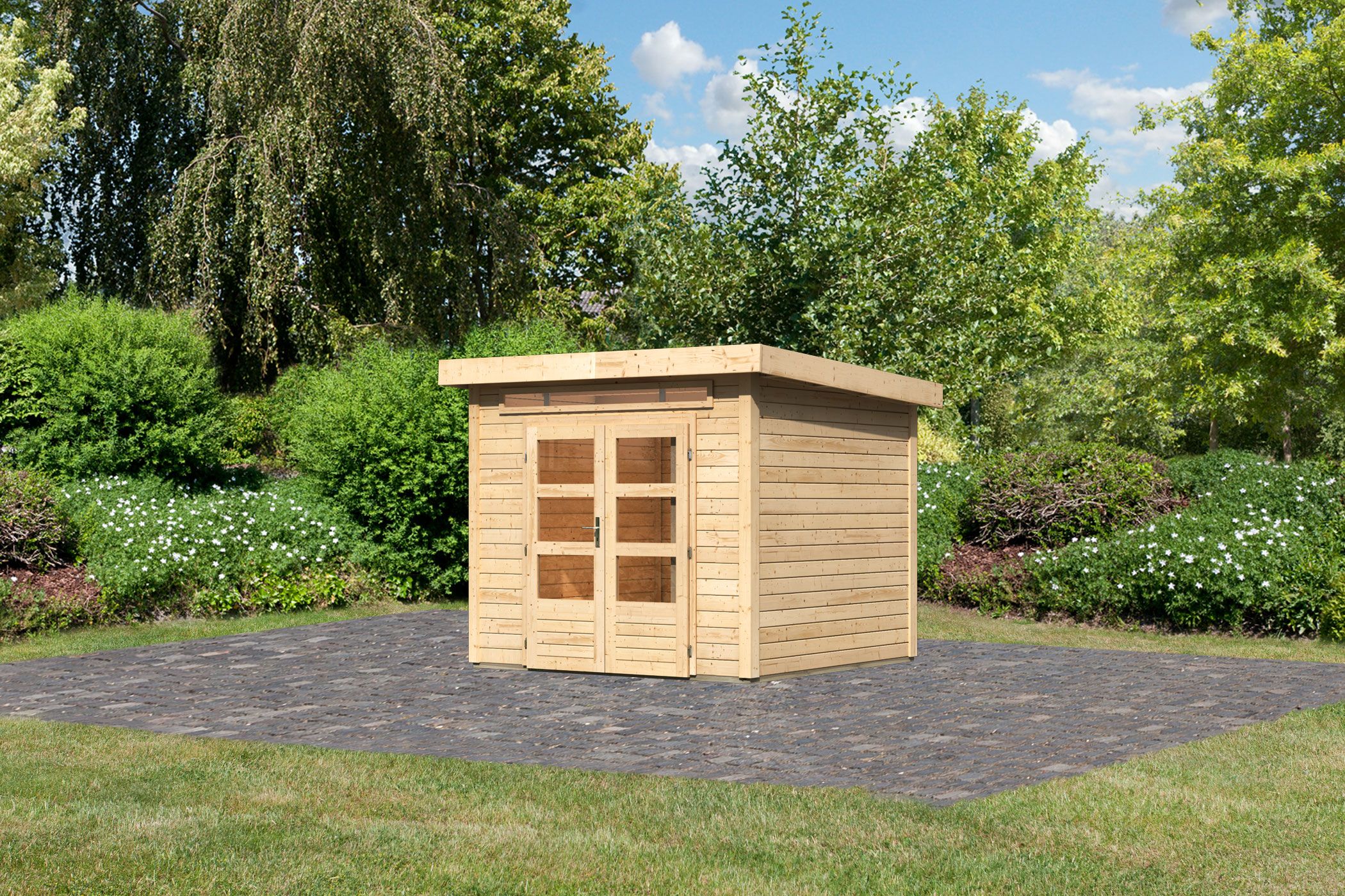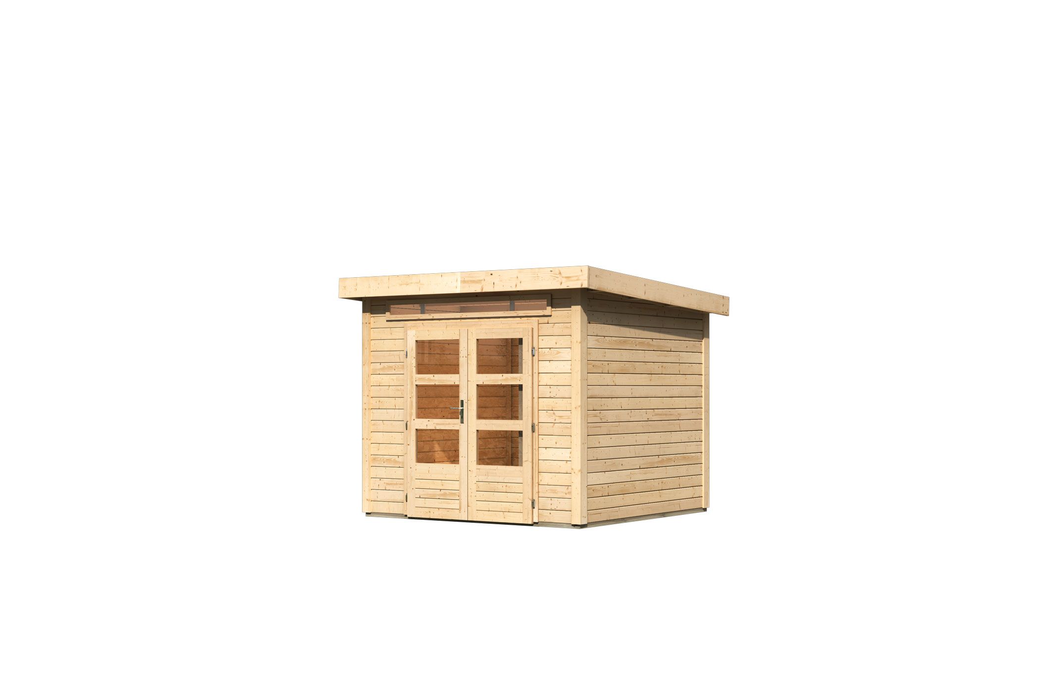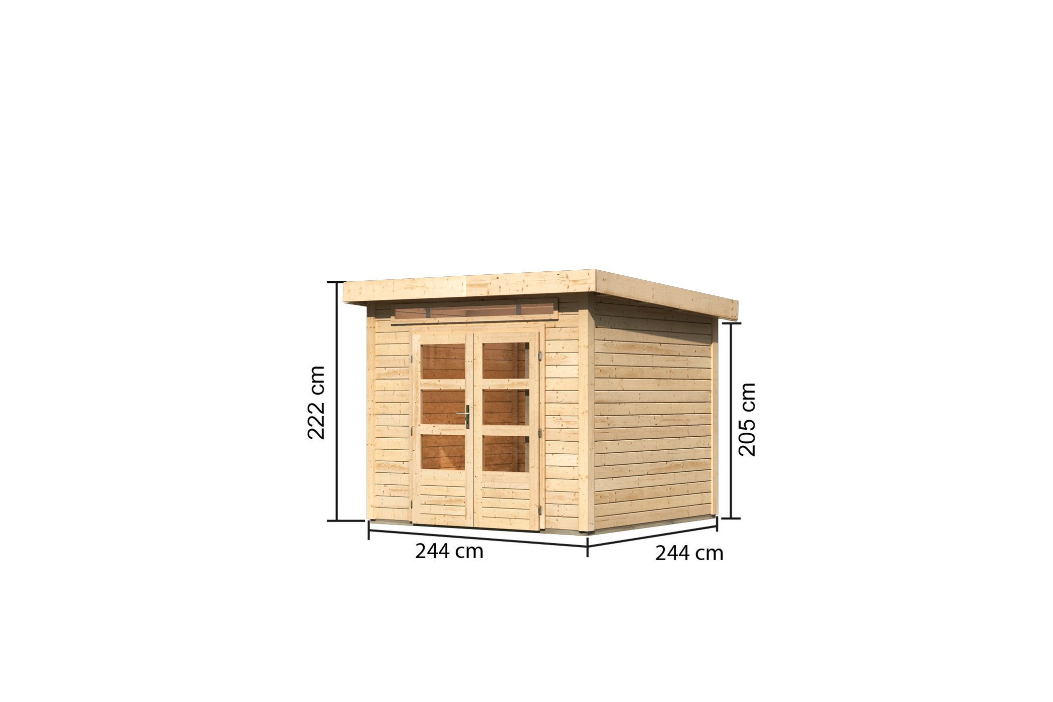 Hinweis: Fußboden und Dacheindeckung optional erhältlich (nicht im Lieferumfang des Hauses enthalten)!