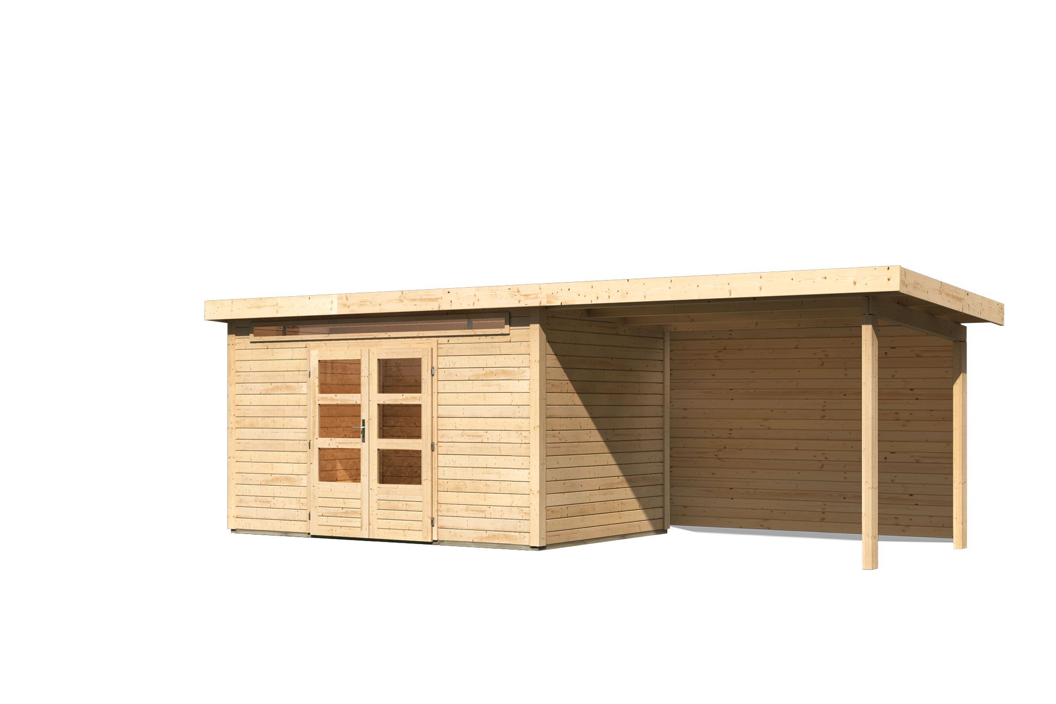 Karibu Gartenhaus “Kandern 7” Pultdach mit Anbau/Terrasse modern aus Holz in Natur