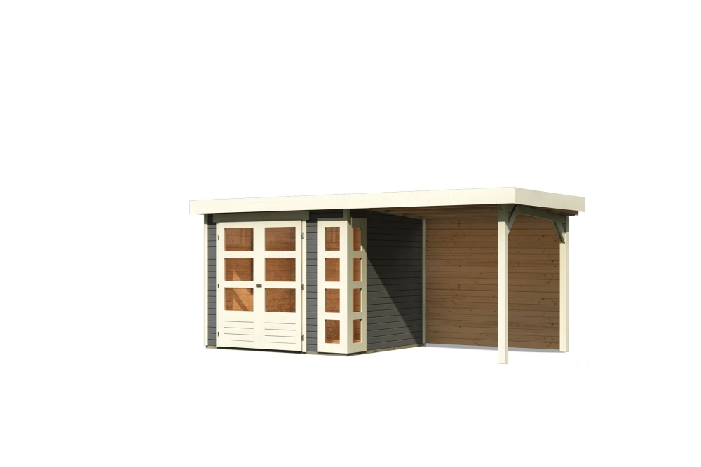 Karibu Gerätehaus “Kerko 3” Flachdach mit Anbau/Terrasse modern aus Holz in Terragrau