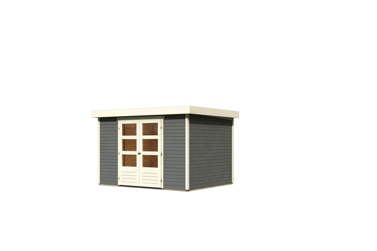 Das Gartenhaus Venlo E strahlt mit seiner natürlichen Schönheit in naturbelassenem, nordischem Fichtenholz oder im Karibu-Farbsystem lackiertem Terragrau. Das 19mm Systemhaus wird durch ein einfaches Steck-und Schraubsystem aufgebaut und verlangt somit kein großes handwerkliches Geschick.
