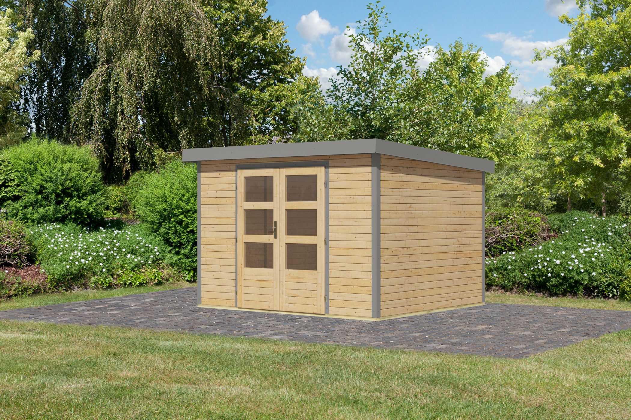 perfekte Vereinigung von Holz und Metall mit dem Hybrid-Gartenhaus von Karibu.
