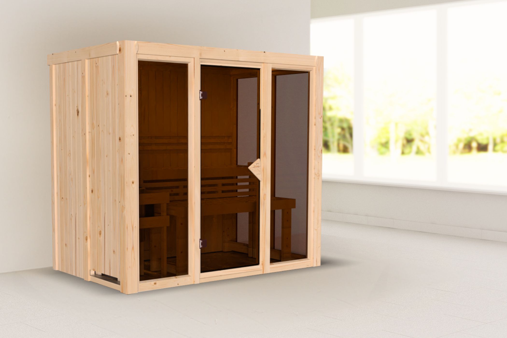 Hinweis: Diese Sauna ist ausschließlich für 3,6 kW Öfen ausgelegt, Starkstromöfen können nicht montiert werden.