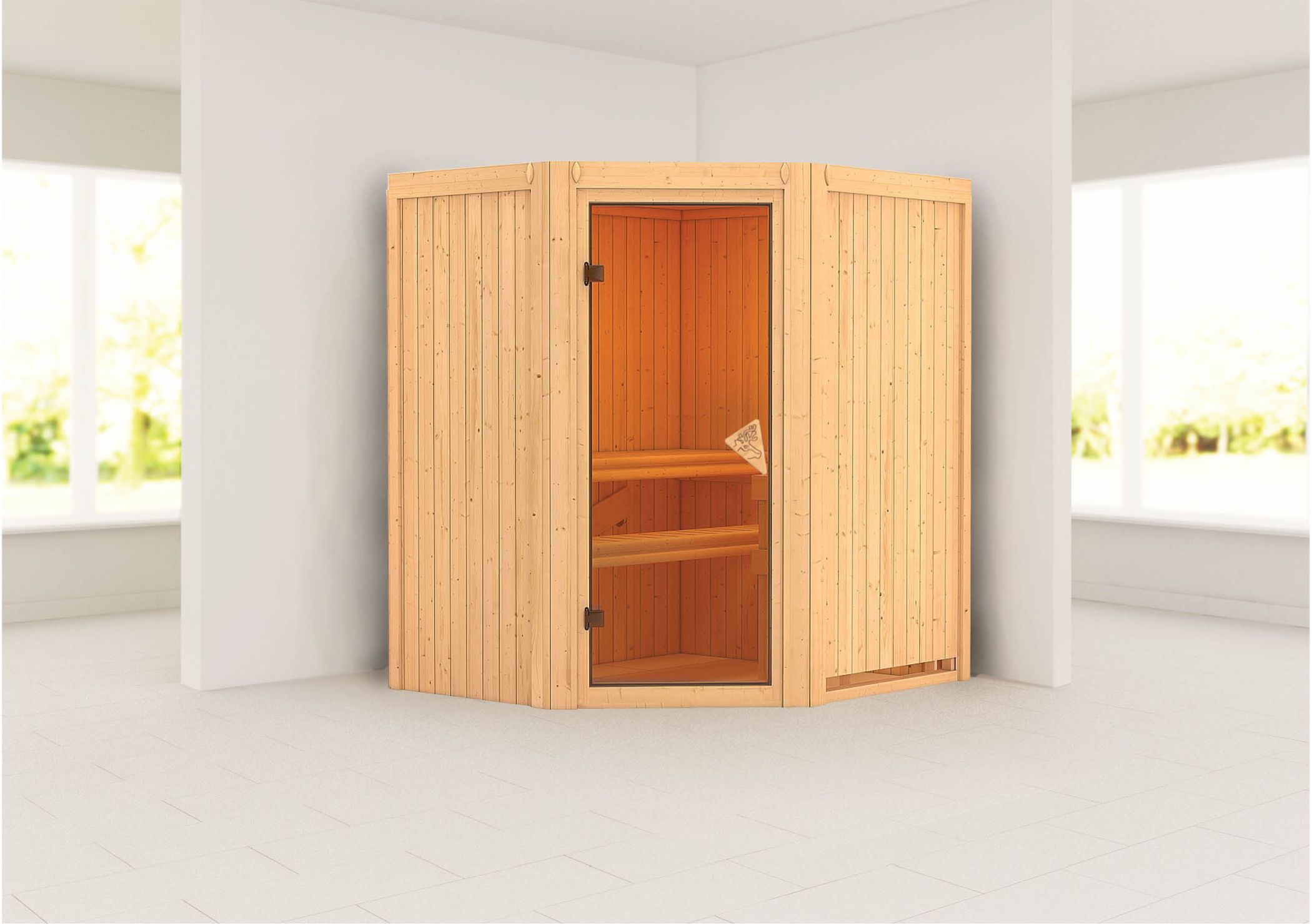 Das volle Saunaerlebnis genießen und dennoch Energie sparen. Dies ist möglich mit unserenr 68mm Systemsauna Tonja und dem steckerfertigen 3,6kW-Saunaofen. Durch die vormontierten Wandelemente kann die Sauna schnell und einfach montiert werden. Die 68mm starken Elemente bestehen aus einer Rahmenkonstruktion, welche an der Sichtseite mit 12,5mm starkem Spezial-Softline-Profilholz verstärkt sind. Diese Konstruktion bietet eine ideale Isolierung und hält die Wärme perfekt im Innenraum. Optional ist die Sauna Tonja mit einem Dachkranz inkl. drei LED-Spots erhältlich. Diese sorgen nicht nur für ein schönes Ambiente im Außenbereich der Sauna, sondern setzen diese auch noch gekonnt in Szene. Die Außenmaße betragen 170 x 151 x 198cm (B/T/H). In den großen Innenraum der Sauna gelangen Sie durch eine Saunatür. Hier haben Sie die Wahl aus vier Varianten und das ganz ohne Mehrkosten. Egal ob in der wärmegedämmten, energiesparenden Version, der klaren Ganzglastür, der Version mit bronzierte Ganzglastür oder der modernen graphitfarbenen Türversion. Hier ist garantiert für jeden Geschmack das Richtige dabei. Um sich im Saunainneren perfekt erholen zu können, wird hier1 Saunaliege aus massivem Espenholz montiert. Das Holz ist besonders weich und nimmt die Wärme nicht so stark an. Dies ermöglicht ein angenehmes Sitz- und Liegegefühl. Bei dem steckerfertigen Saunaofen können Sie zwischen drei Varianten wählen. Einer mit integrierter Steuerung, einer mit externem Steuergerät Easy und einem 3,6kW Bio-Kombi-Ofen. Das Besondere an diesem Saunaofen ist aber nicht seine Variantenvielfallt, sondern der Anschluss. Der Ofen wird mithilfe eines Steckers zur Inbetriebnahme an eine hausübliche 230Volt-Steckdose angeschlossen. Da hierfür kein Fachmann erforderlich ist, entfallen die Kosten für einen Elektriker und einen Umbau auf einen 400 Volt-Anschluss. Genießen Sie das volle Saunaerlebnis und sparen zusätzlich Energie mit der 68mm Plug & Play Sauna Tonja.