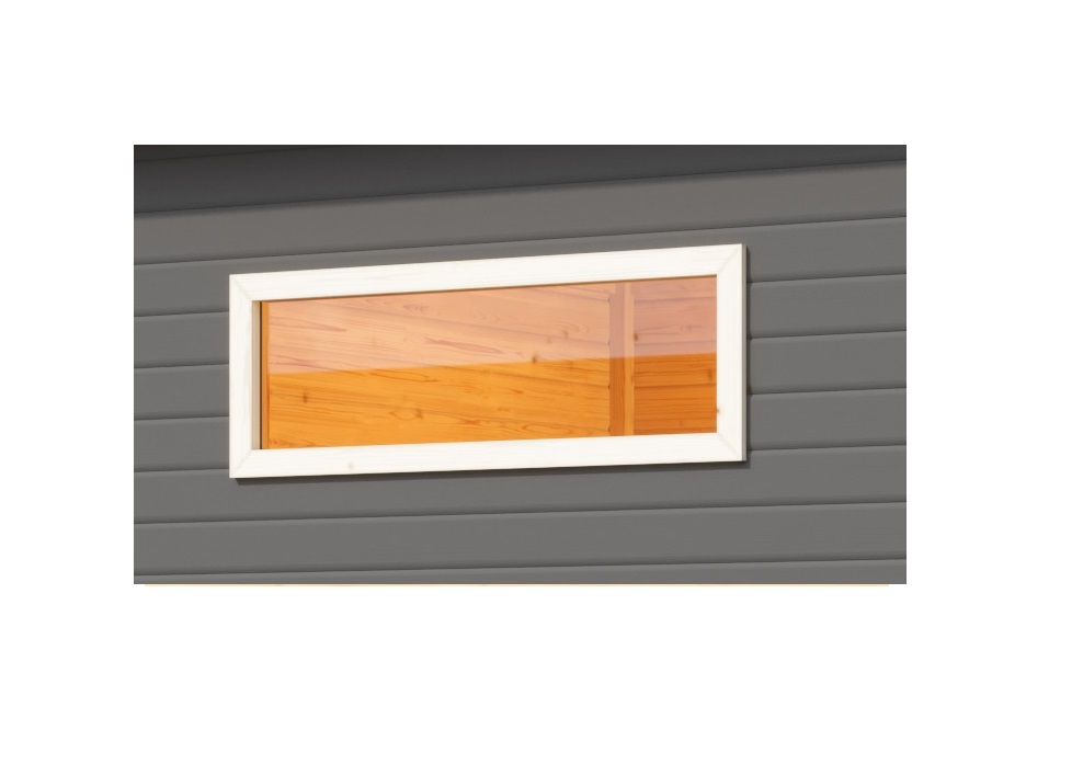 Das feststehende Saunafenster bietet dem Innenraum einer Sauna einen angenehmen Lichteinfall. Es besteht aus klarem Echtglas und ist für 38 mm Saunen geeignet. Das Fenster bieten wir in naturbelassen oder in elfenbeinweis an.