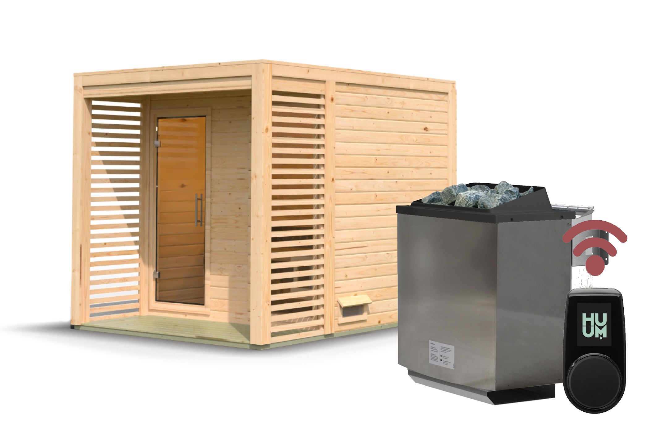 Im Lieferumfang befindet sich bereits ein Ofen, entweder der finnische Trockenofen oder der Bio-Kombi Ofen der die finnische Trockensauna und Feuchtigkeit kombinieren kann. Die hochwertige HUUM UKU Wifi Saunasteuerung gehört hier ebenfalls zum Lieferumfang dazu. Die beliebte Saunasteuerung HUUM UKU in der WIFI Variante (integriertes WLAN-Modul), kompatibel mit finnischen- und Bio-Saunaöfen und mit einer App (kostenlos) steuerbar. Mit der Steuerkonsole UKU Wi-Fi ist das Aufheizen Ihrer Sauna einfach und bequem. Mit der UKU WIFI Variante können Sie Ihre Sauna wahlweise über das schwarze Steuergerät oder über die HUUM App steuern und aufheizen. Für die Nutzung der App muss die Steuerkonsole an ein WiFi-Netz verbunden werden. Für ein angenehmes sowie sicheres Saunaerlebnis ist UKU WiFi zudem mit verschiedenen Extras ausgestattet. Die Steuerkonsole ist mit Elektro-Saunaöfen von verschiedenen Herstellern verwendbar. Die HUUM Steuerungskonsole UKU verbindet Nutzungskomfort mit Sicherheit. Die Benutzung des stilvollen schwarzen Steuergerätes ist schon beim ersten Mal einfach und komfortabel. Darüber hinaus ist sie mit einer Kindersicherung, einem Türsensor und einem Überhitzungsschutz ausgestattet. Die HUUM Steuerkonsole UKU WiFi benötigt für die Verknüpfung mit einer App eine WiFi-Verbindung, deshalb eignet sie sich am besten für Saunen im Privatbereich und für sonstige Bereiche, die mit einem WiFi-Netz abgedeckt sind.