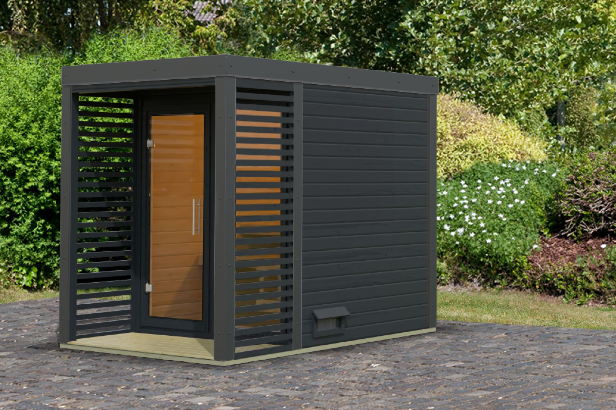Die Wände bestehen aus nordischer Fichte, bekannt für ihre natürliche Schönheit und Robustheit. Stahlecken verleihen dem Design einen modernen Touch. Ein großer Vorteil ist die geringe Wartung, dank der Stahlelemente im Vergleich zu reinen Holzgartenhäusern. So haben Sie mehr Zeit zum Saunieren statt zur Instandhaltung. Das Gartenhaus ist individualisierbar und in verschiedenen Farben erhältlich, die frei kombiniert werden können. Gestalten Sie es nach Ihrem persönlichen Geschmack und lassen Sie Ihren Garten erstrahlen.