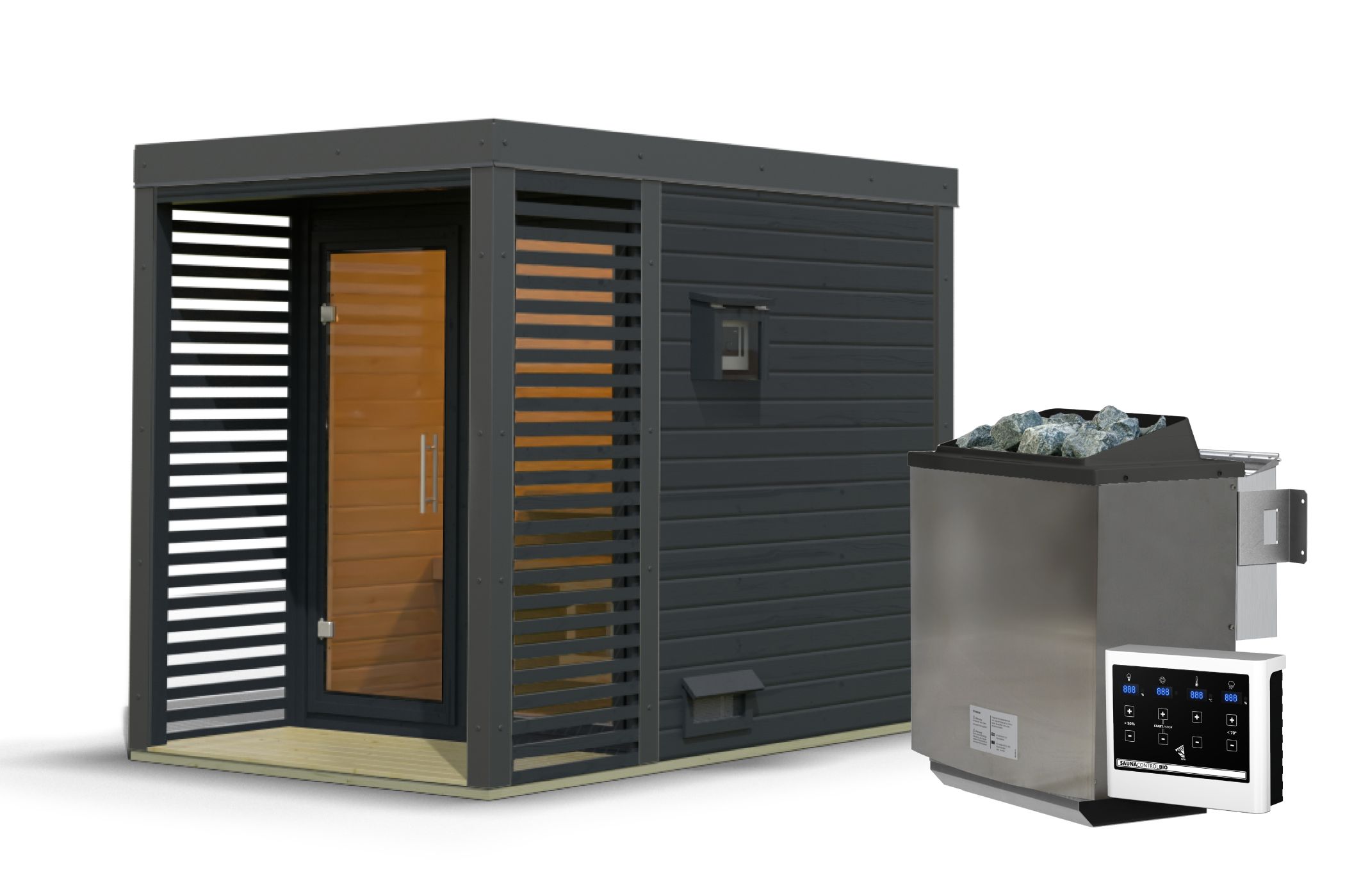 Dank stahlverstärkter Ecken und Dachleisten ist unser Saunahaus nicht nur robust, sondern auch besonders langlebig und widerstandsfähig gegenüber den Elementen. Mit seinem zeitlosen Design und seinen erstklassigen Eigenschaften ist unser Saunahaus die perfekte Wahl für alle, die Wert auf Qualität, Komfort und Stil legen. Gönnen Sie sich das ultimative Wellness-Erlebnis und verwandeln Sie Ihren Garten in eine Oase der Ruhe und Entspannung.