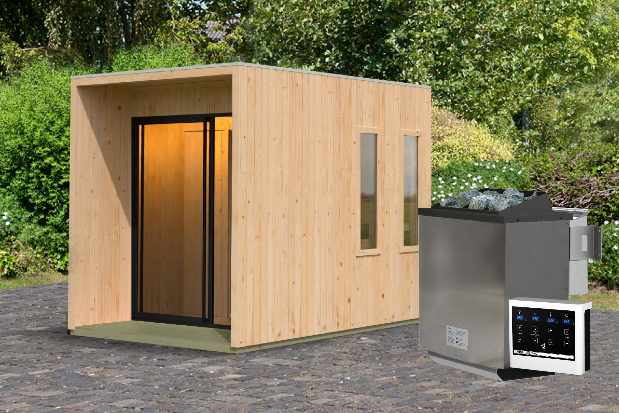 Das Saunahaus besteht aus vorgefertigten isolierten 73 mm starken Elementen aus nordischer Fichte. Mit einem Gesamtmaß von 220 cm x 288 cm bietet es genügend Platz für ungestörte Wellnessstunden im eigenen Garten. Der Saunaraum ist mit einer Fläche von 204 cm x 133 cm natürlich ebenfalls ausreichend dimensioniert. Innen bieten 3 Saunabänke Platz zur Entspannung. Das formschöne und praktische Dach sorgt für den Witterungsschutz von oben.