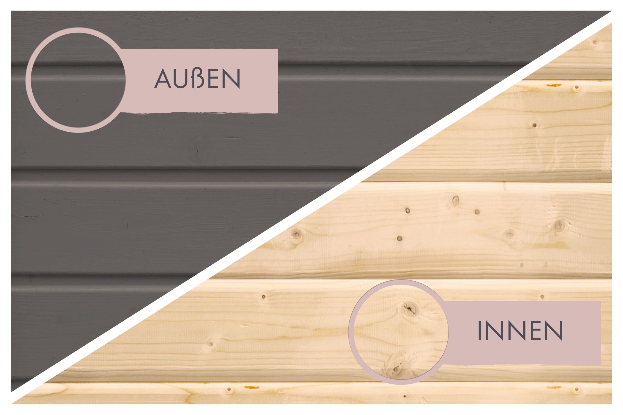 Das Saunahaus Hytti bietet mit einem Außenmaß von 196 x 113 x 228 cm genügend Raum zum Entspannen. Nach einem stressigen Arbeitstag sich in den eigenen Garten zurückziehen und in der Außensauna entspannen oder den Urlaubstag im Garten mit einem ausgiebigen Saunagang abrunden. Das Saunahaus besteht aus 38mm Massivholzbohlen aus nordischem Fichtenholz und wird im einfachen Steck- und Schraubsystem montiert. Es ist in klassischem Naturbelassen oder terragrau erhältlich.