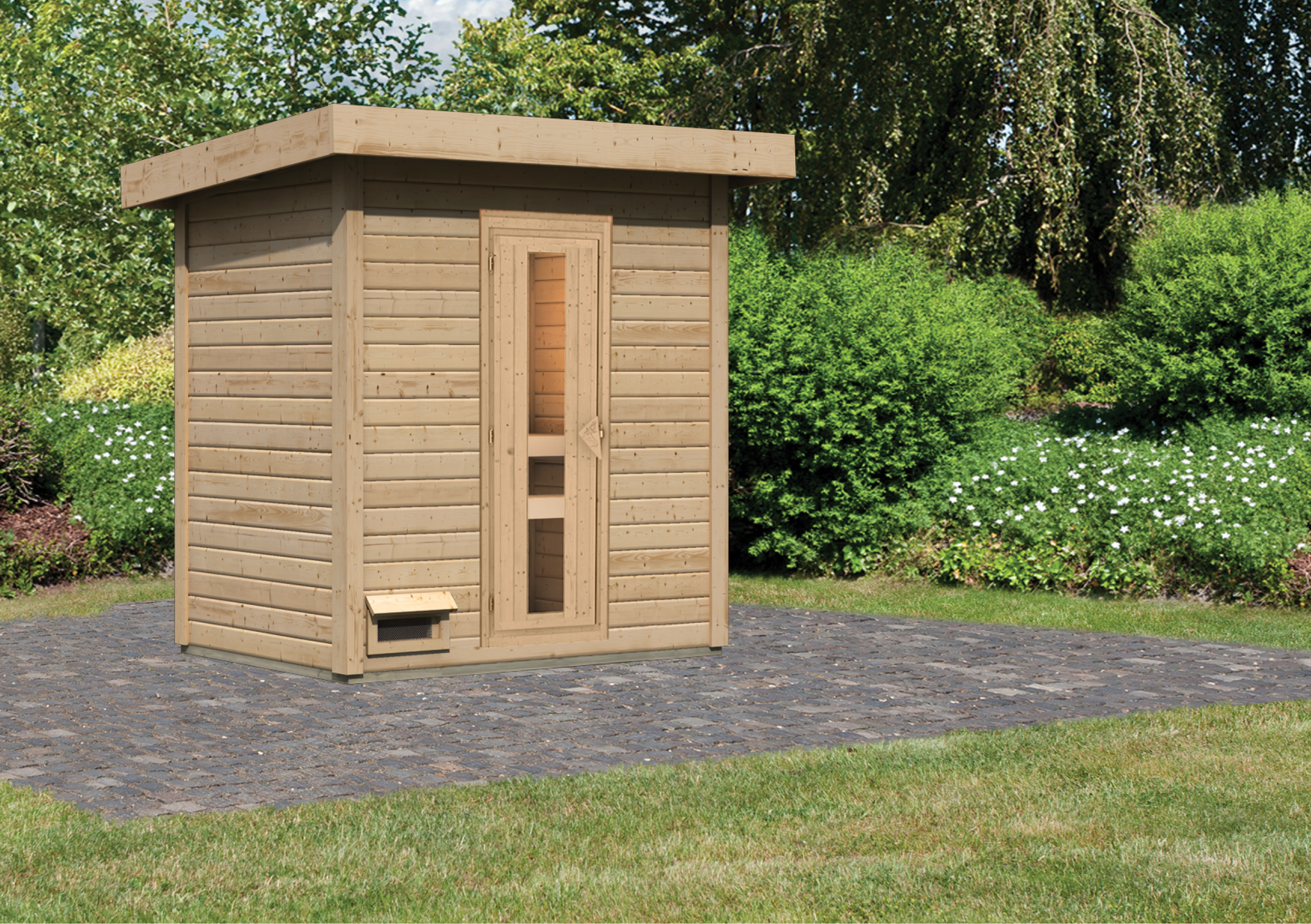 Das Saunahaus Hytti bietet mit einem Außenmaß von 196 x 146 x 228 cm genügend Raum zum Entspannen. Nach einem stressigen Arbeitstag sich in den eigenen Garten zurückziehen und in der Außensauna entspannen oder den Urlaubstag im Garten mit einem ausgiebigen Saunagang abrunden. Das Saunahaus besteht aus 38mm Massivholzbohlen aus nordischem Fichtenholz und wird im einfachen Steck- und Schraubsystem montiert. Es ist in klassischem Naturbelassen oder Terragrau lackiert erhältlich.