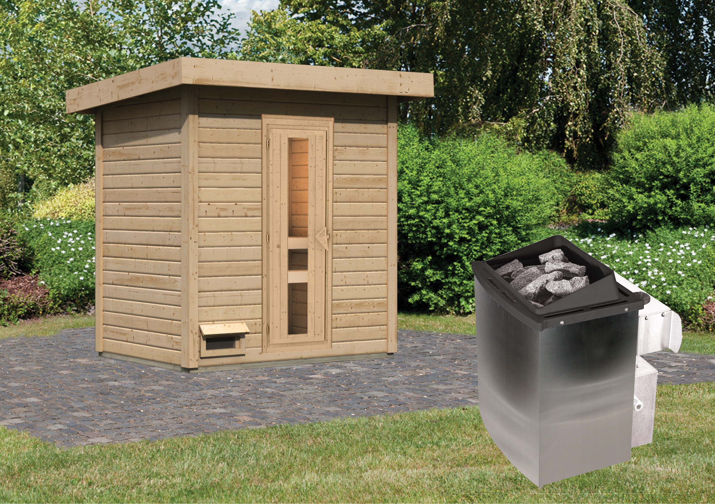 Das Saunahaus Hytti bietet mit einem Außenmaß von 196 x 146 x 228 cm genügend Raum zum Entspannen. Nach einem stressigen Arbeitstag sich in den eigenen Garten zurückziehen und in der Außensauna entspannen oder den Urlaubstag im Garten mit einem ausgiebigen Saunagang abrunden. Das Saunahaus besteht aus 38mm Massivholzbohlen aus nordischem Fichtenholz und wird im einfachen Steck- und Schraubsystem montiert. Es ist in klassischem Naturbelassen oder Terragrau lackiert erhältlich.