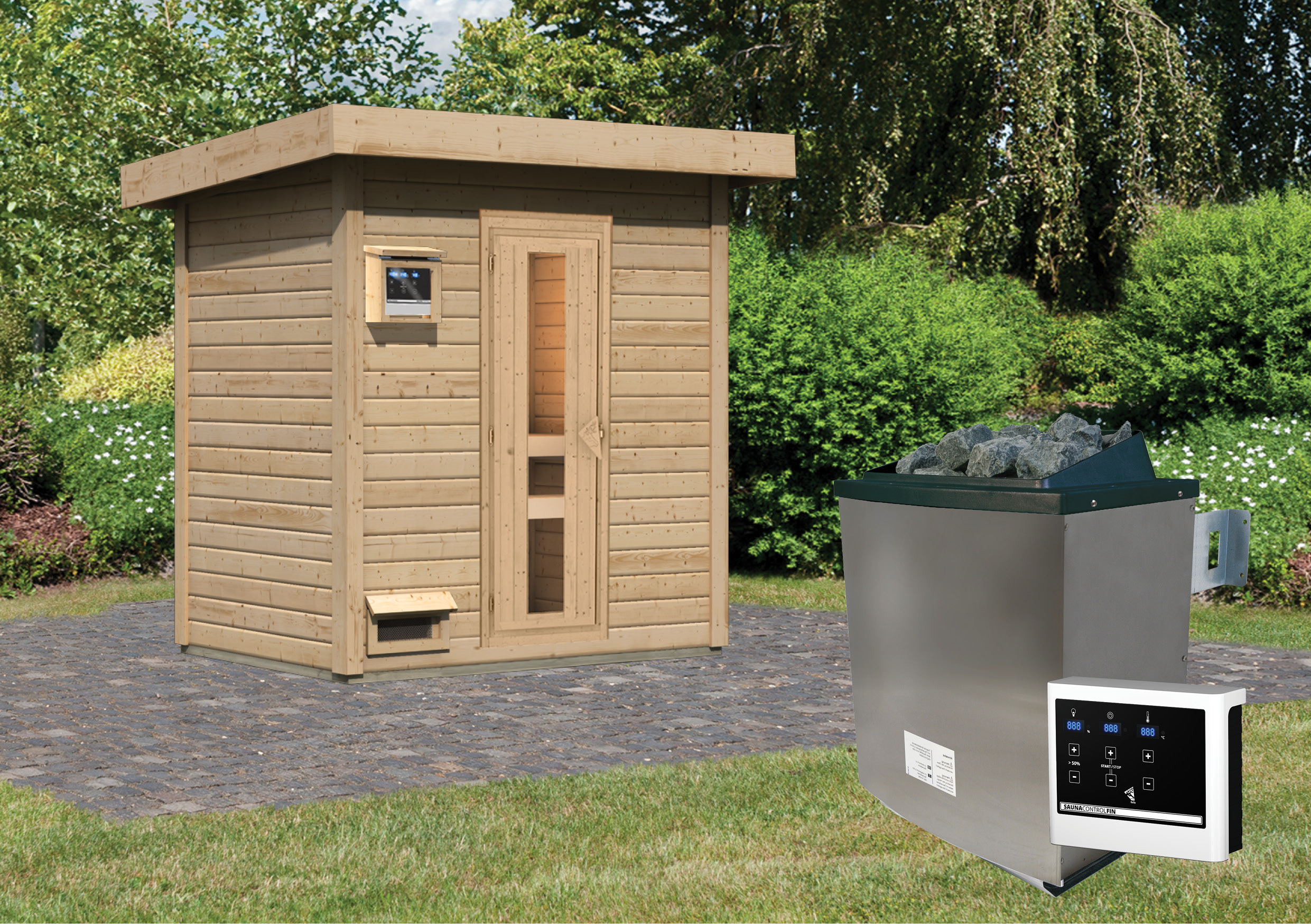 Das Saunahaus Hytti bietet mit einem Außenmaß von 196 x 146 x 228 cm genügend Raum zum Entspannen. Nach einem stressigen Arbeitstag sich in den eigenen Garten zurückziehen und in der Außensauna entspannen oder den Urlaubstag im Garten mit einem ausgiebigen Saunagang abrunden. Das Saunahaus besteht aus 38mm Massivholzbohlen aus nordischem Fichtenholz und wird im einfachen Steck- und Schraubsystem montiert. Es ist in klassischem Naturbelassen oder Terragrau lackiert erhältlich.