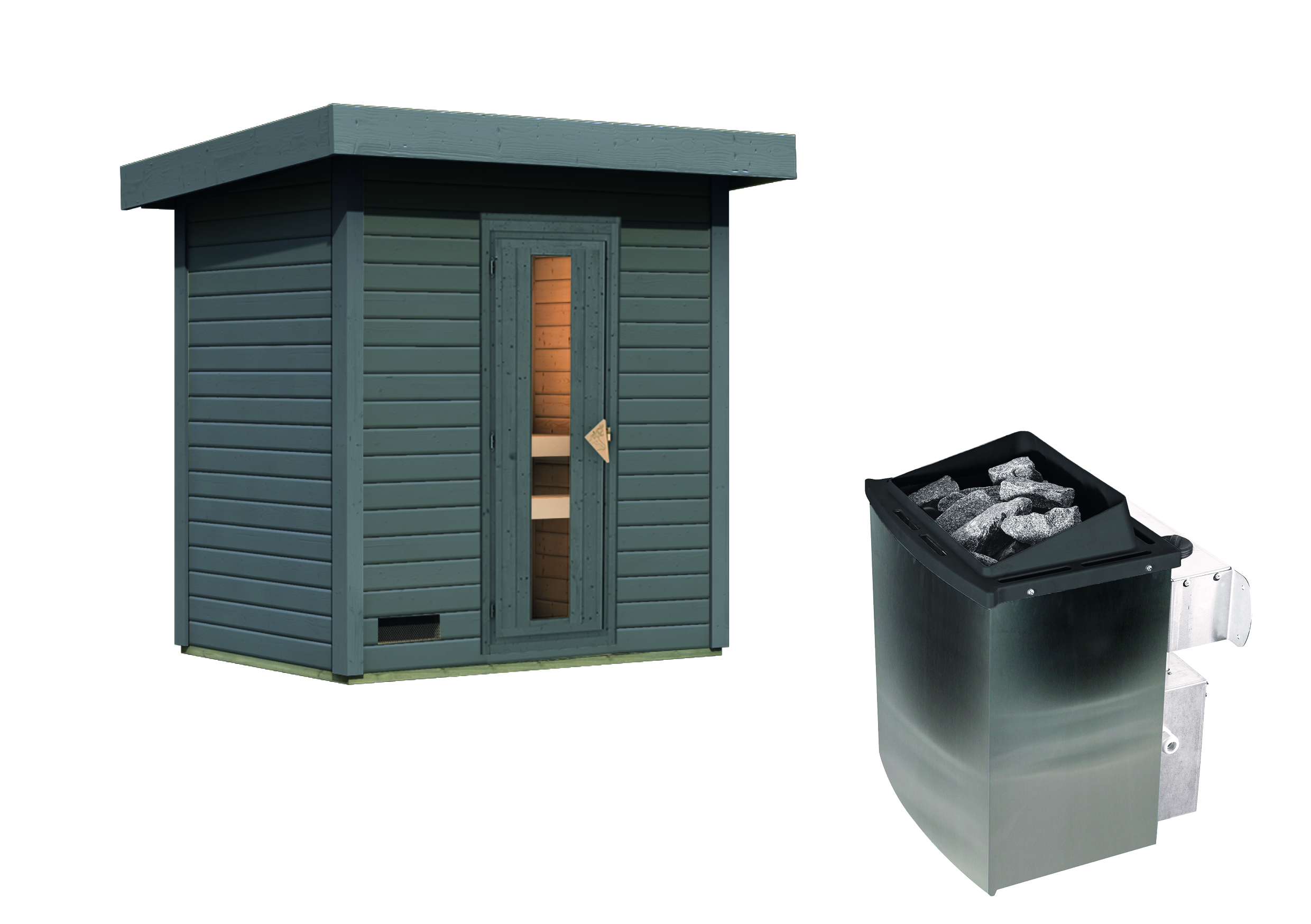 Das Saunahaus Hytti bietet mit einem Außenmaß von 196 x 146 x 228 cm genügend Raum zum Entspannen. Nach einem stressigen Arbeitstag sich in den eigenen Garten zurückziehen und in der Außensauna entspannen oder den Urlaubstag im Garten mit einem ausgiebigen Saunagang abrunden. Das Saunahaus besteht aus 38mm Massivholzbohlen aus nordischem Fichtenholz und wird im einfachen Steck- und Schraubsystem montiert. Es ist in klassischem Naturbelassen oder Terragrau lackiert erhältlich.