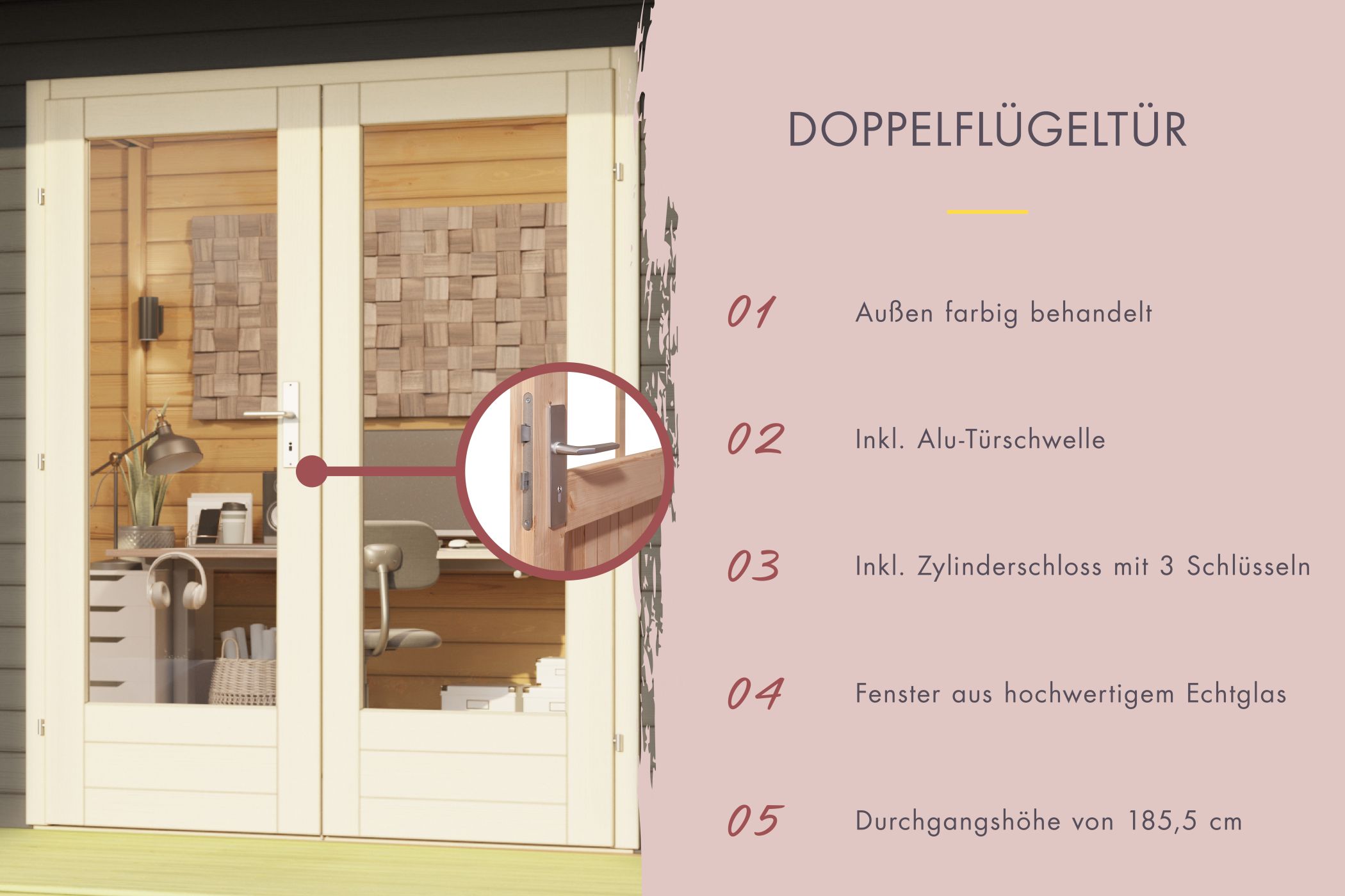 - Türschloss sichert das Saunahaus vor unbefugtem Zutritt