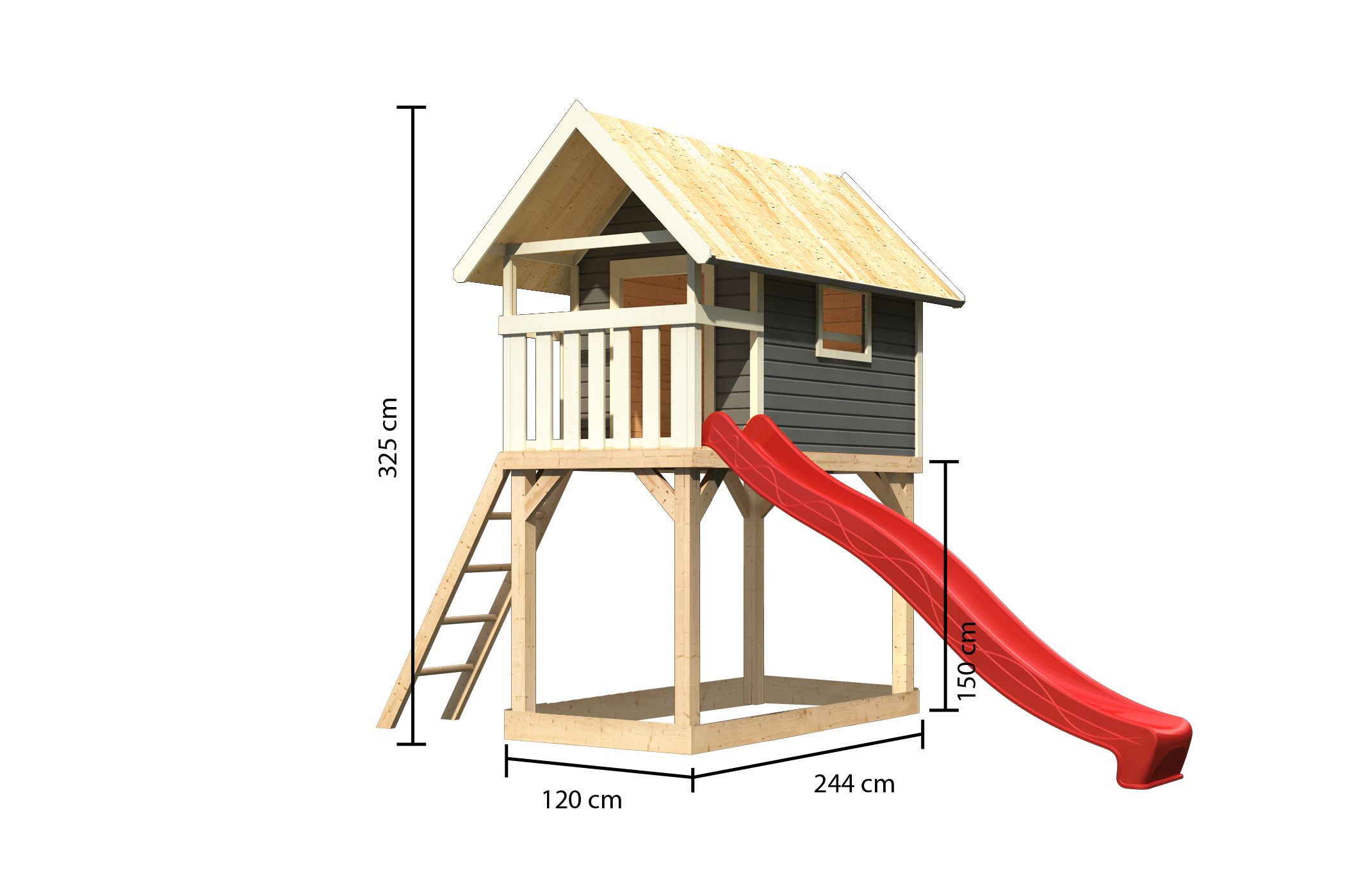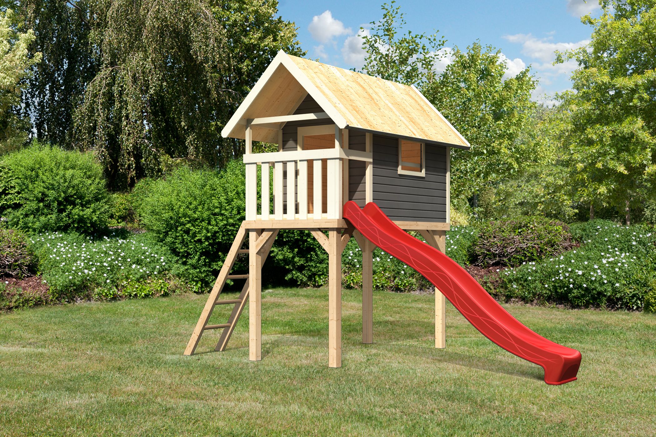 Stelzenhaus Gernegroß terragrau mit Rutsche rot / Lagerabverkauf