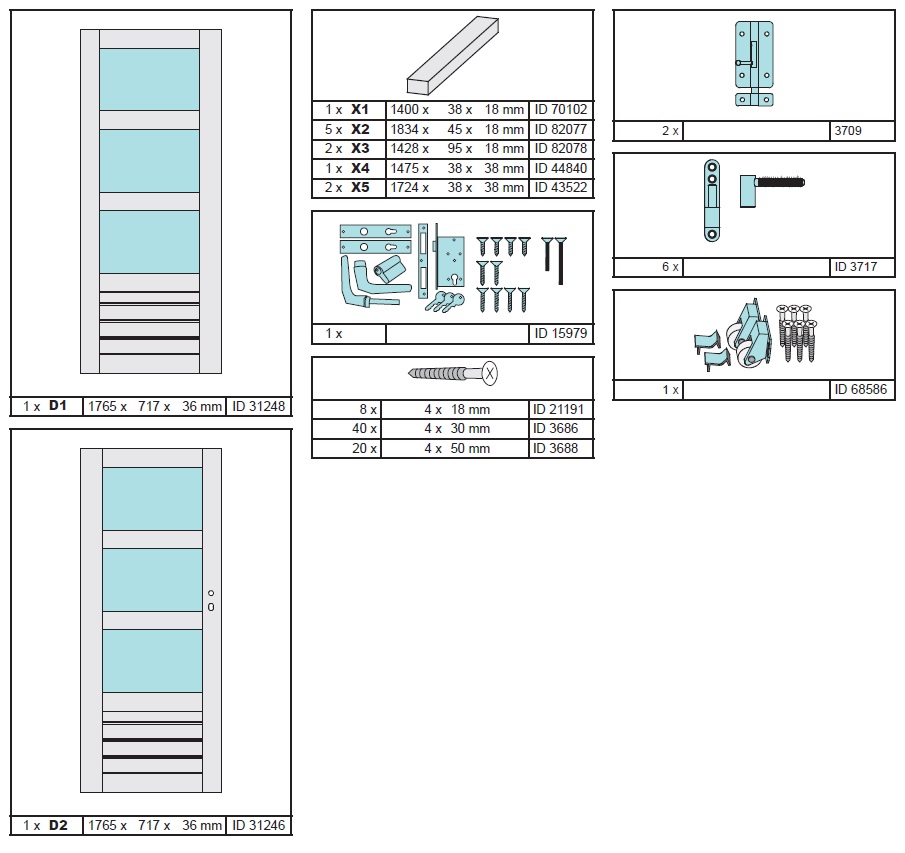 - 38mm Gartenhaustür Doppelflügeltür Komplettset
