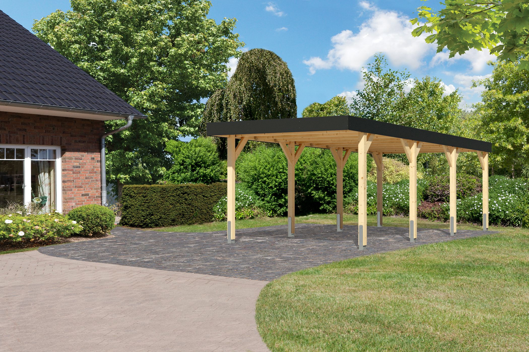 - Massive Pfosten (12 x 12 cm): Die robusten Pfosten aus hochwertigem Leimholz garantieren eine ausgezeichnete Stabilität und Langlebigkeit. Sie sind besonders widerstandsfähig gegenüber Witterungseinflüssen und bieten eine zuverlässige Stütze für das gesamte Carport.