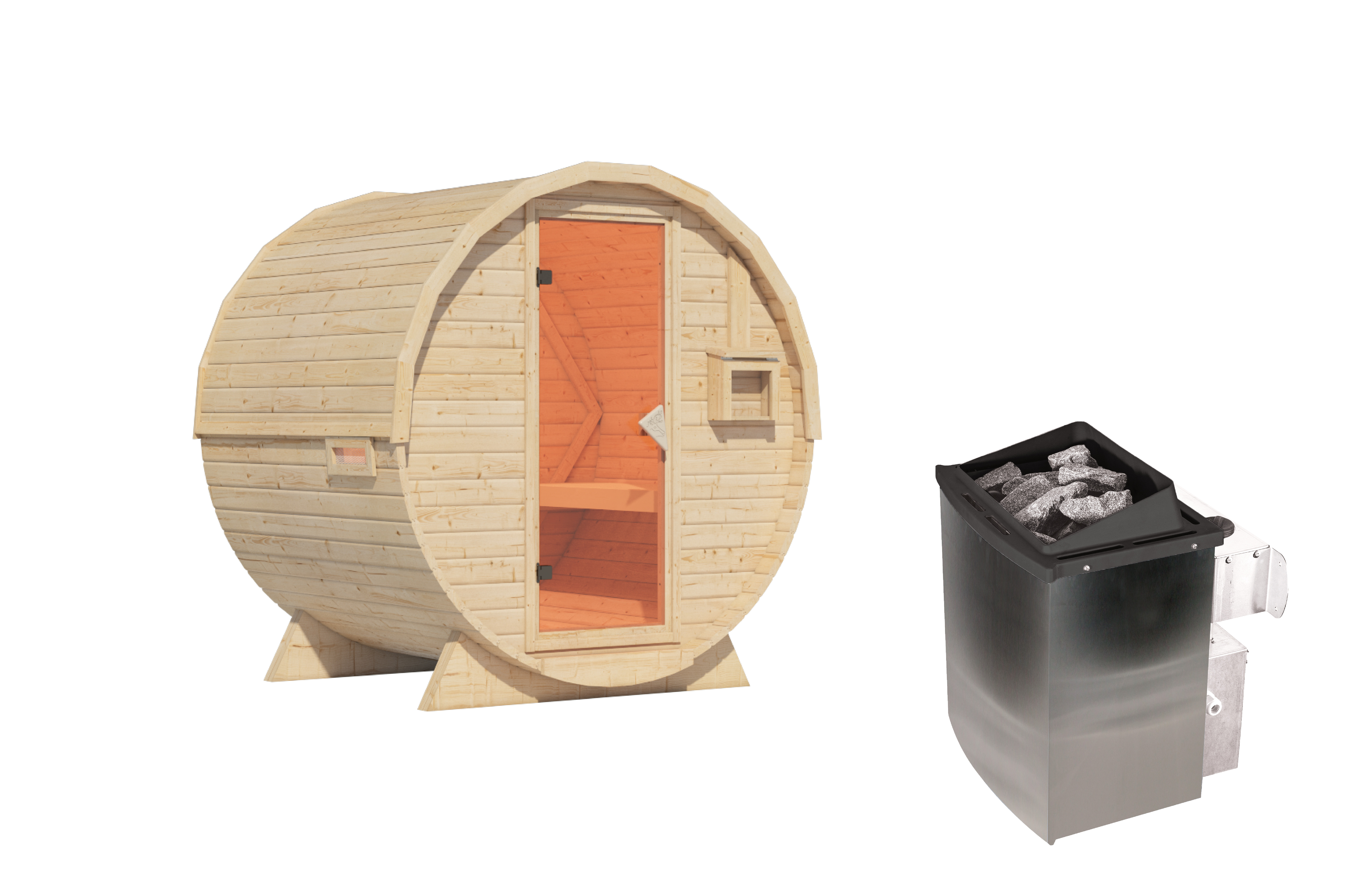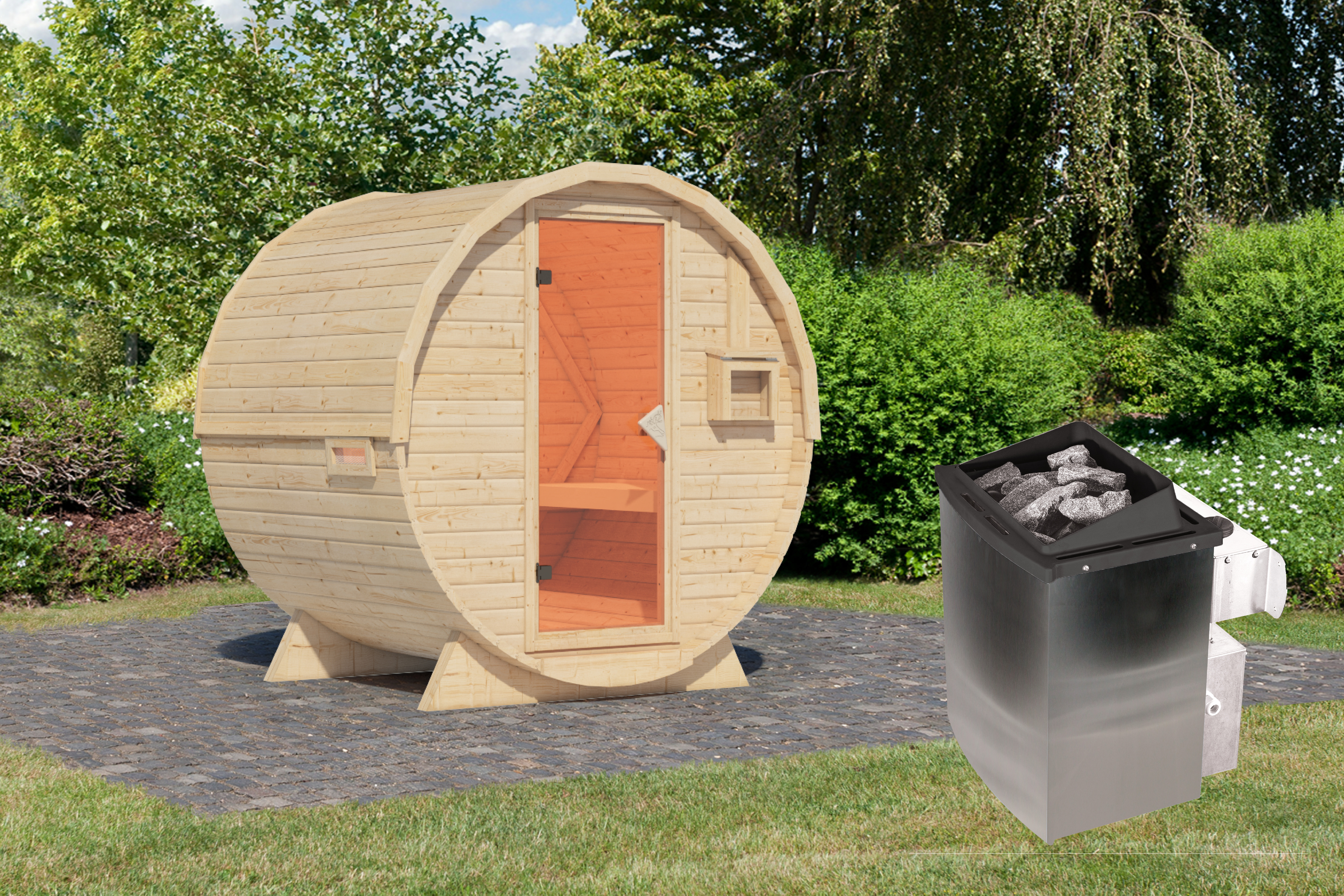 Karibu "Fasssauna 1" 2 Personen 9 kW Ofen + integrierte Steuerung