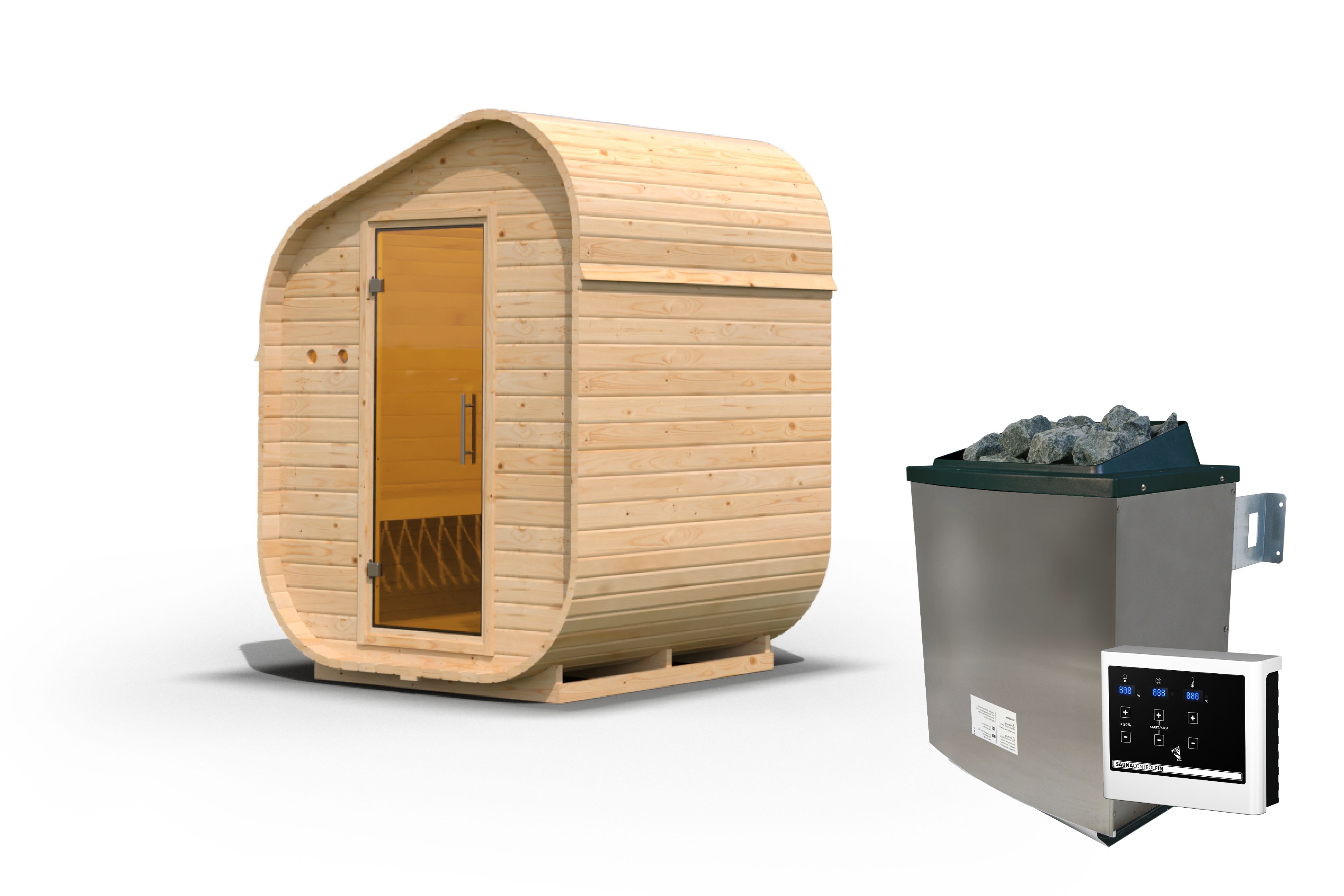 Karibu "Fasssauna asymmetrisch 1" 2 Personen 9 kW Ofen (finnisch)