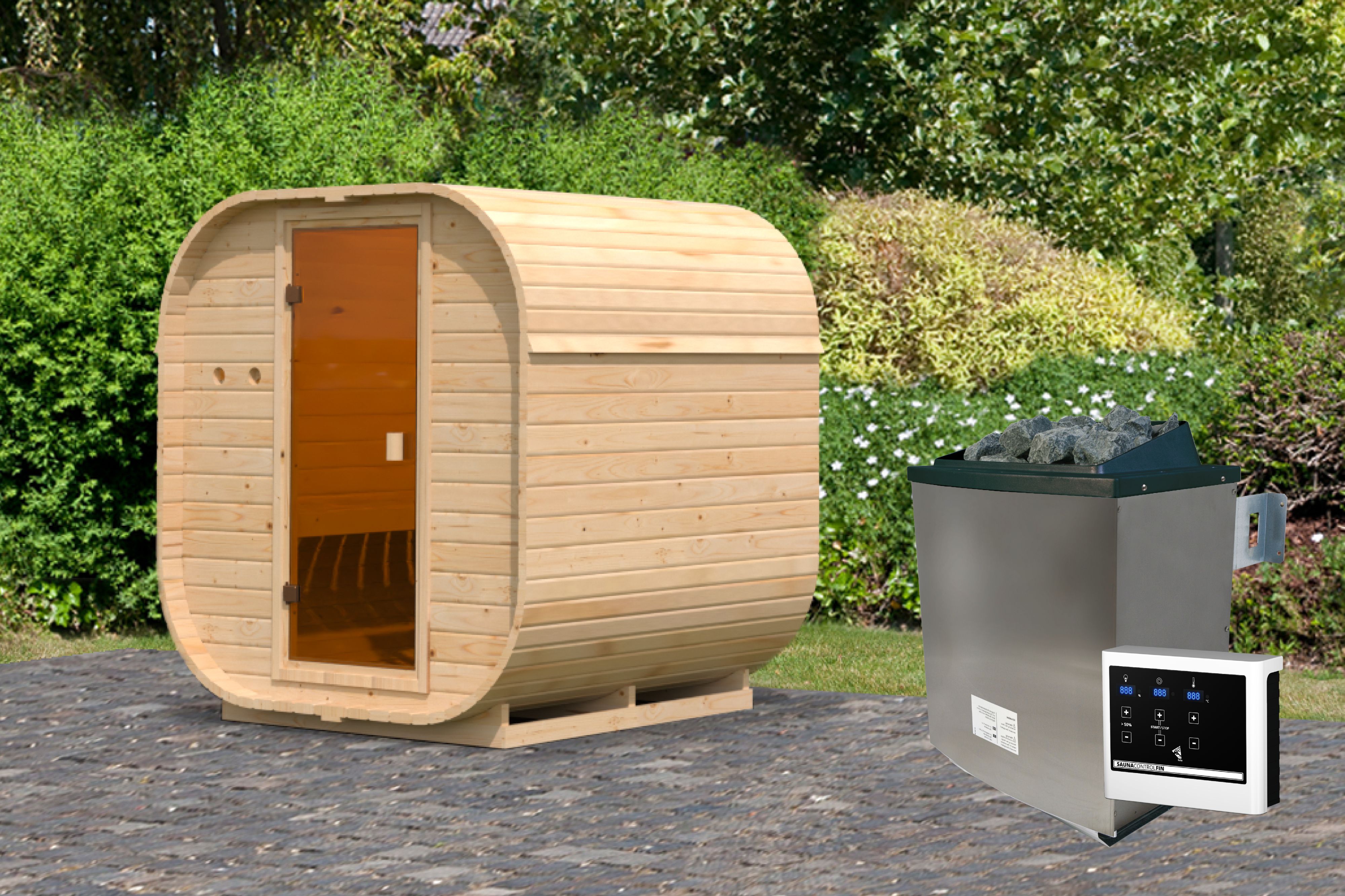 Karibu "Fasssauna Quadro 1" 2 Personen 9 kW Ofen (finnisch)