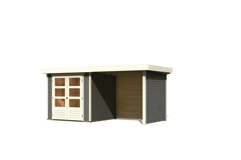Karibu Gerätehaus “Askola 2” Flachdach mit Anbau/Terrasse modern aus Holz in Terragrau