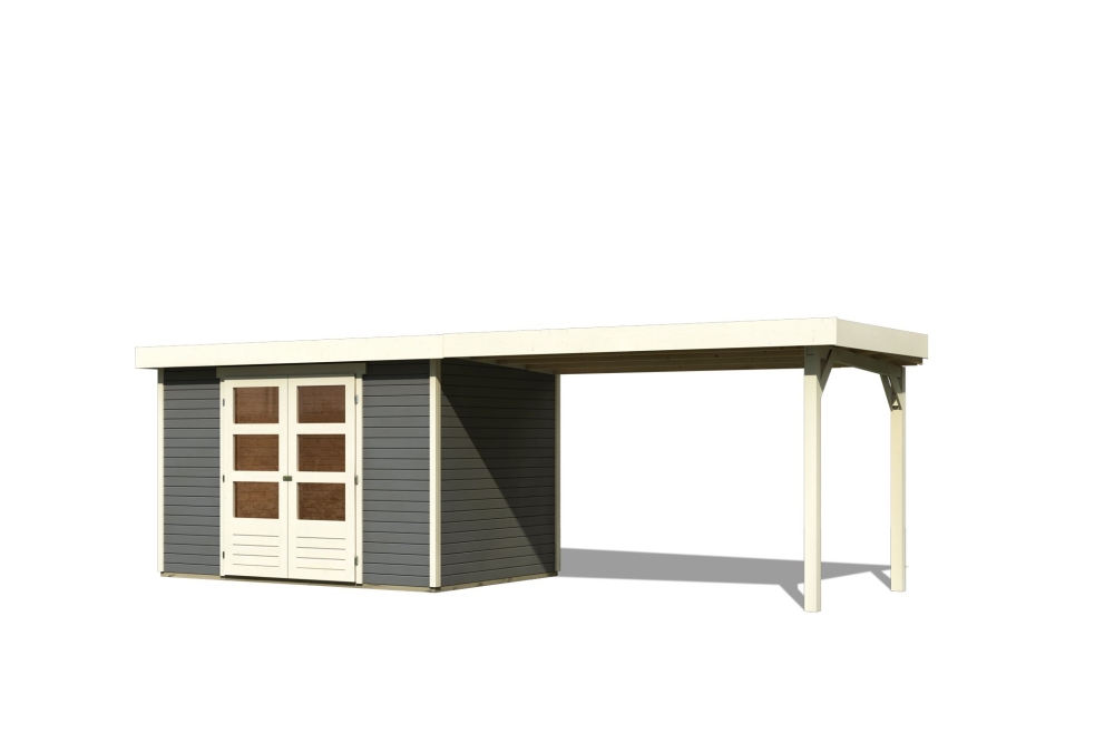 Karibu Gerätehaus “Askola 4” Flachdach mit Anbau/Terrasse modern aus Holz in Terragrau