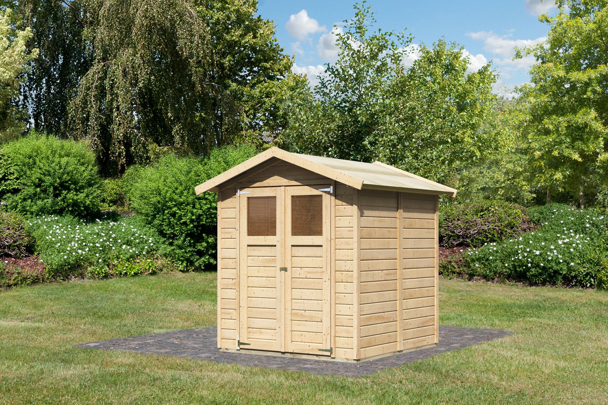 - Gartenhaus aus hochwertiger nordischer Fichte mit wasserabweisender Profilierung