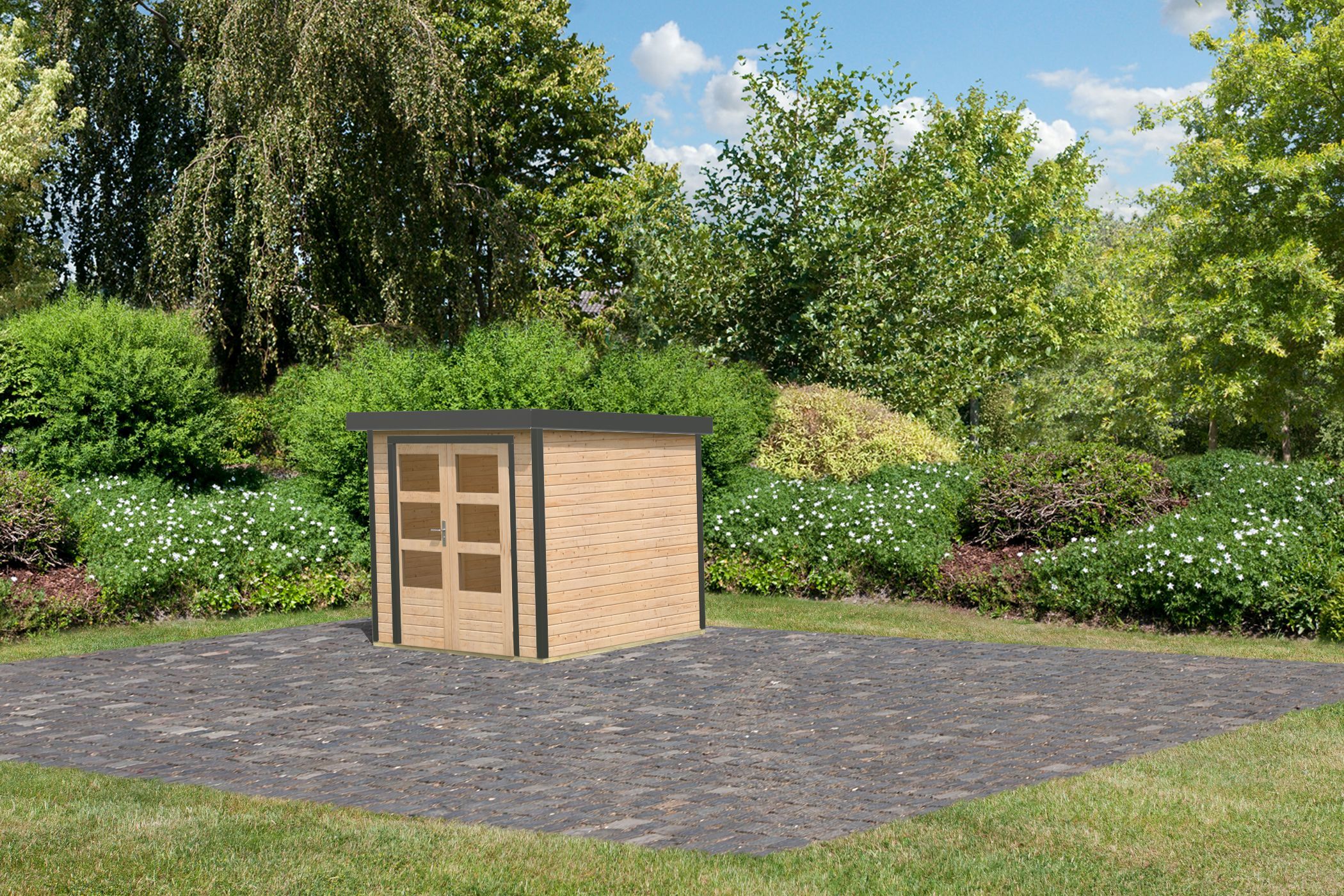 Erleben Sie die perfekte Vereinigung von Holz und Metall mit dem Hybrid-Gartenhaus von Karibu. Genießen Sie hochwertige Materialien, geringe Wartung, Witterungsbeständigkeit, Individualisierbarkeit, einfache Montage, Langlebigkeit und ein modernes Design.