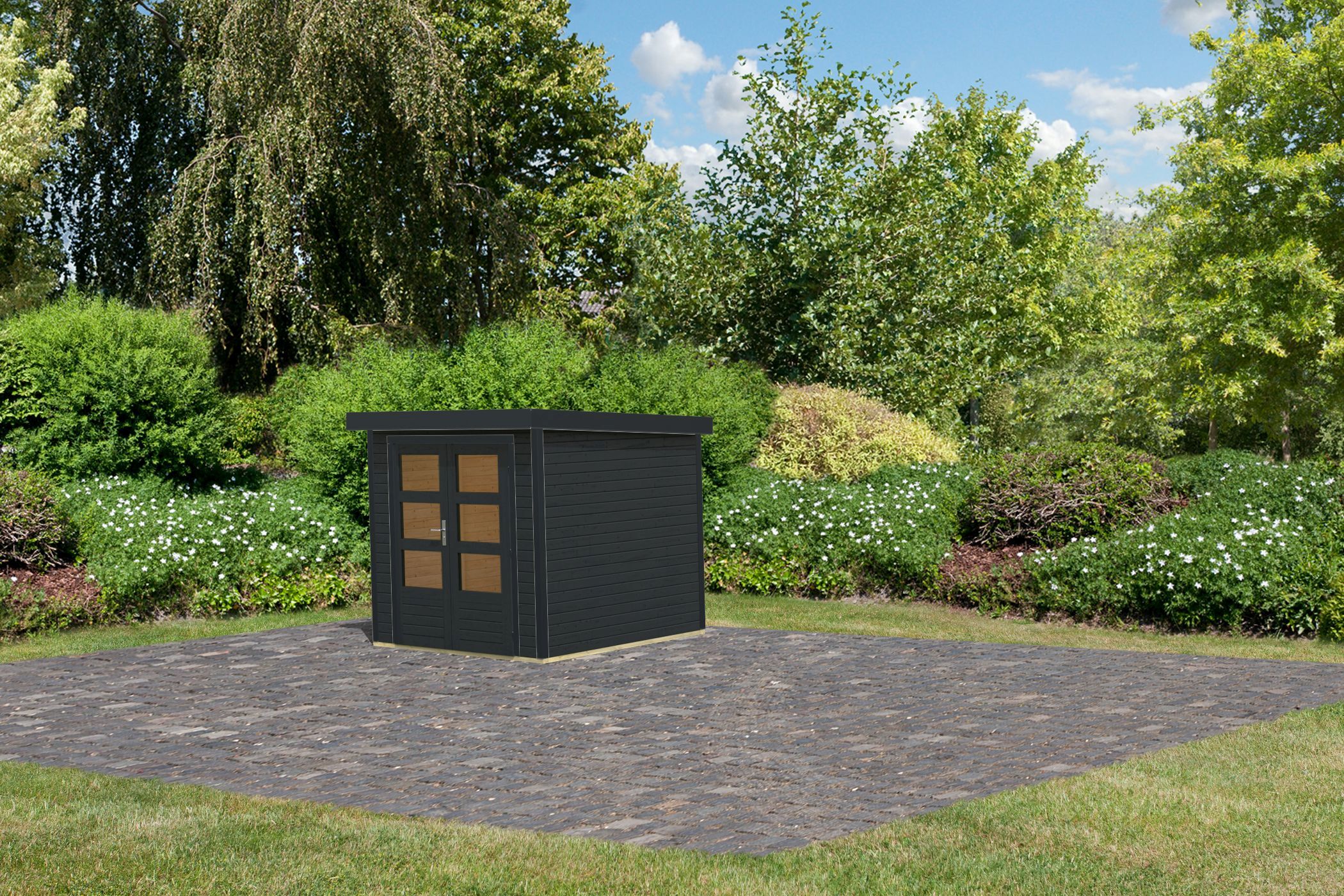 Erleben Sie die perfekte Vereinigung von Holz und Metall mit dem Hybrid-Gartenhaus von Karibu. Genießen Sie hochwertige Materialien, geringe Wartung, Witterungsbeständigkeit, Individualisierbarkeit, einfache Montage, Langlebigkeit und ein modernes Design.