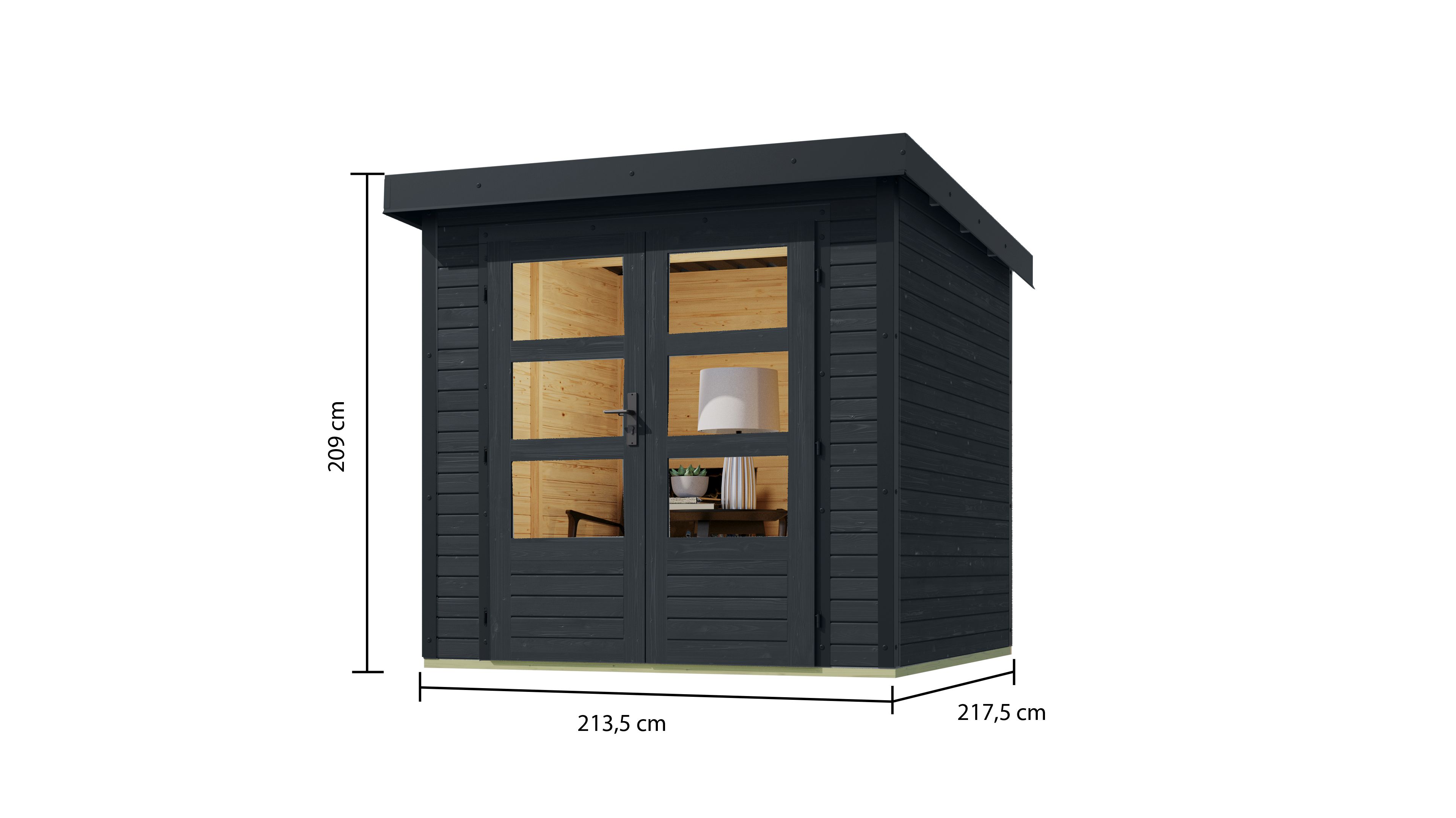 Mit dem optionalen Anbaudach erhalten Sie zusätzlichen Stauraum und erweiterte Nutzungsmöglichkeiten als Gartenlounge. Machen Sie es zu Ihrem persönlichen Rückzugsort.