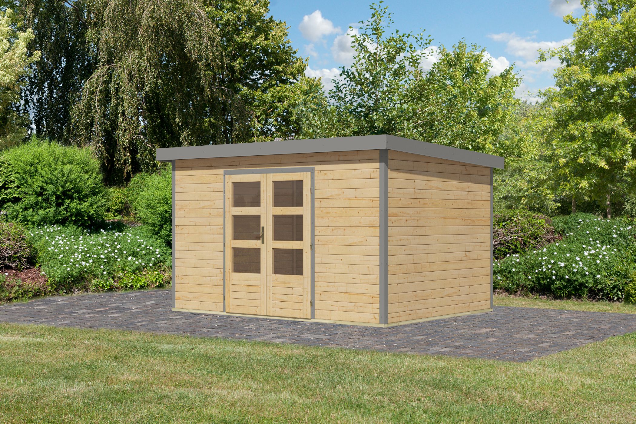 Karibu Gartenhaus Holz & Metall “Pluto 7” Pultdach modern in Natur