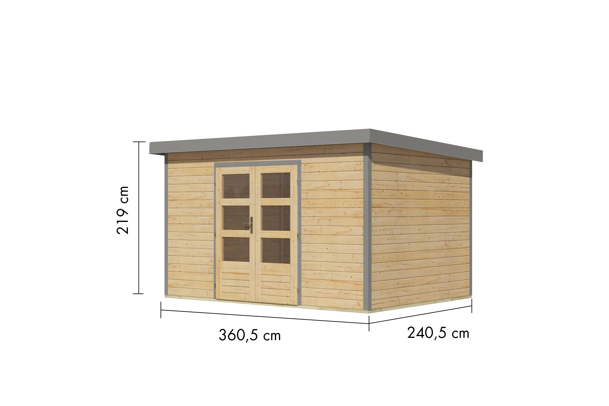 Hinweis: Alle unsere Hybridhäuser (inklusive diesem Produkt) werden in jeglicher Konfiguration mit einem anthrazitfarbenem Trapezblechdach geliefert!