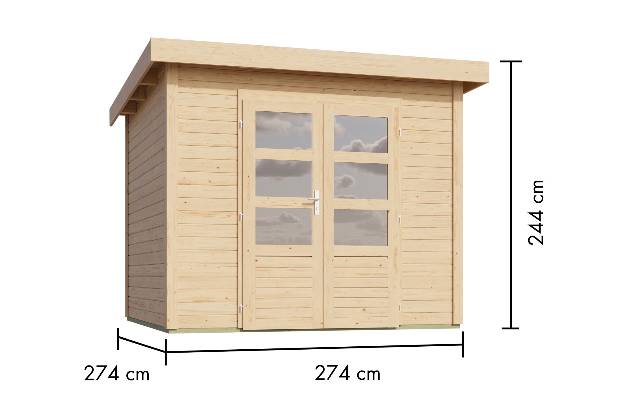 Das Gartenhaus Kolbin 6 XXL mit SOLAR-KIT, ein attraktives Pultdach. Das 28 mm Pultdachhaus aus nordischem Fichtenholz mit Steck-/Schraubsystem ist sowohl in Terragrau, als auch in Naturbelassen erhältlich. . Eine große Besonderheit ist die extra hohe Tür mit einer Durchgangshöhe von 193 cm. Auch das Haus überzeugt dank der 28 mm starken Wandbohlen mit seiner Langlebigkeit. Die Doppelflügeltür mit drei Lichtausschnitten je Türflügel und Zylinderschloss schützt das Gartenhaus vor unbefugtem Eindringen. Das Dach des Gartenhauses mit einer Dachfläche von 9 m² können Sie effektiv mit unserer optional erhältlichen selbstklebenden Dachfolie vor Witterungseinflüsse schützen. Ihre Gegenstände im Hausinneren werden von unten durch einen optional erhältlichen Fußboden und durch im Lieferumfang enthaltene kesseldruckimprägnierte Bodenbalken geschützt. Gestalten Sie Ihren Garten stilvoll mit dem attraktiven Pultdachhaus Kolbin 6 XXL.