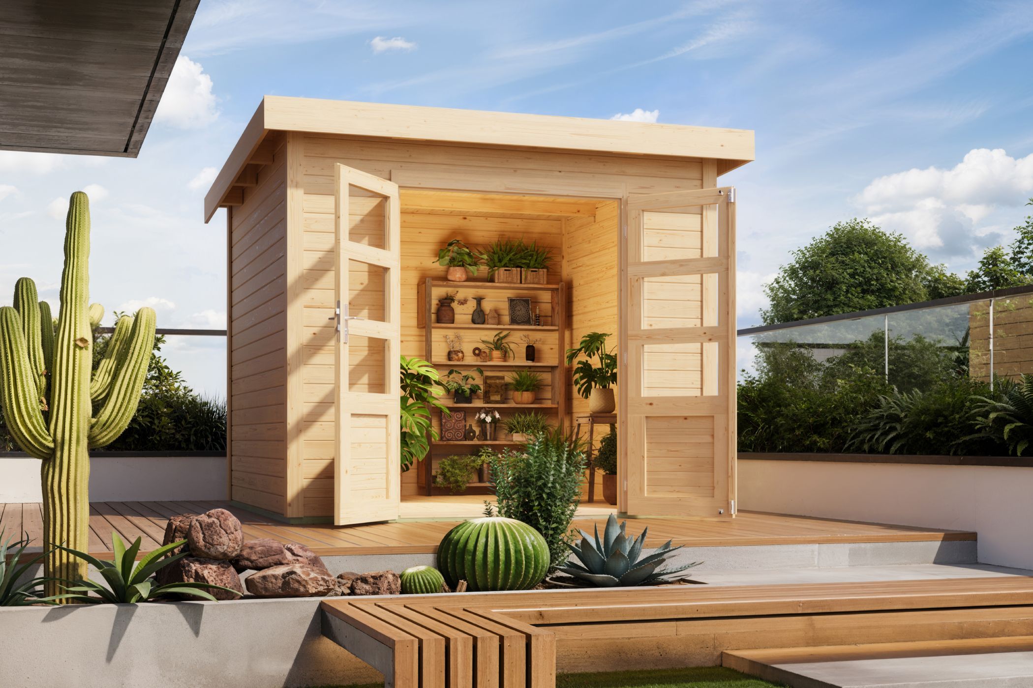 - Gartenhaus mit XXL Tür und einem Durchgangsmaß von 193 cm