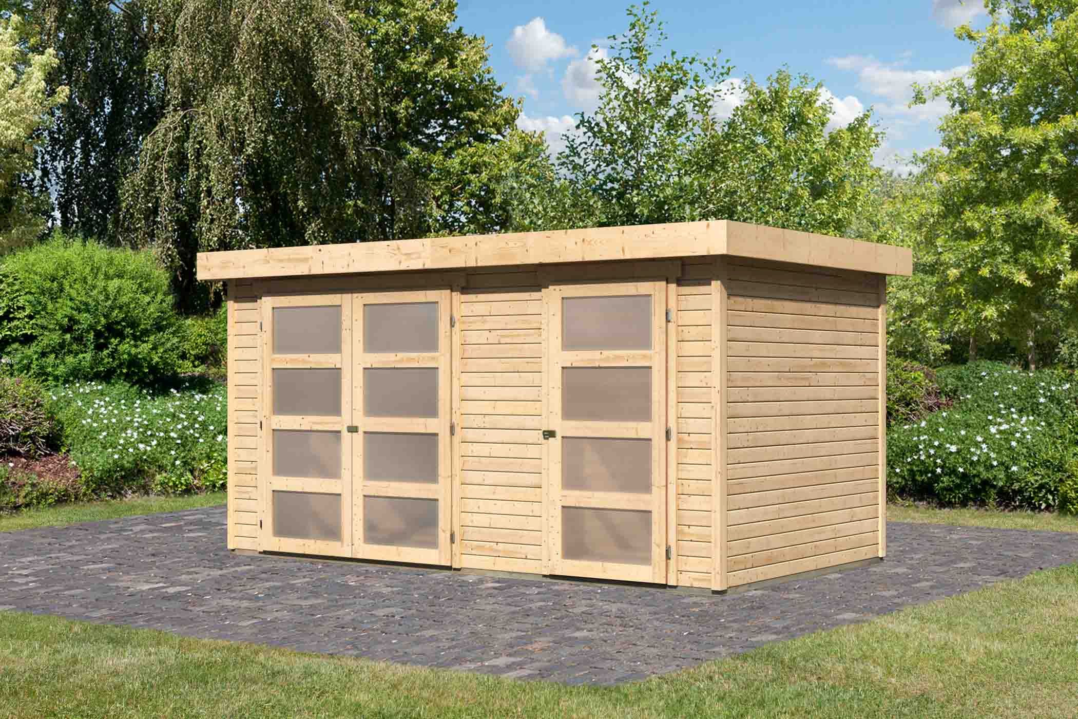 - Gartenhaus aus hochwertiger nordischer Fichte mit wasserabweisender Profilierung