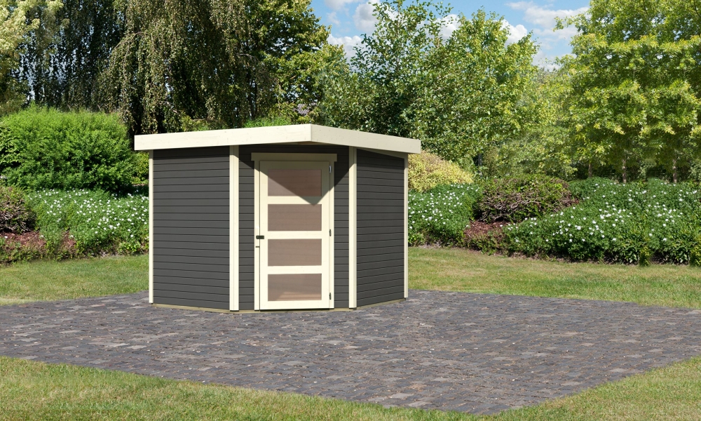 Karibu Gerätehaus “Schwandorf 5” 5-Eck modern aus Holz in Terragrau