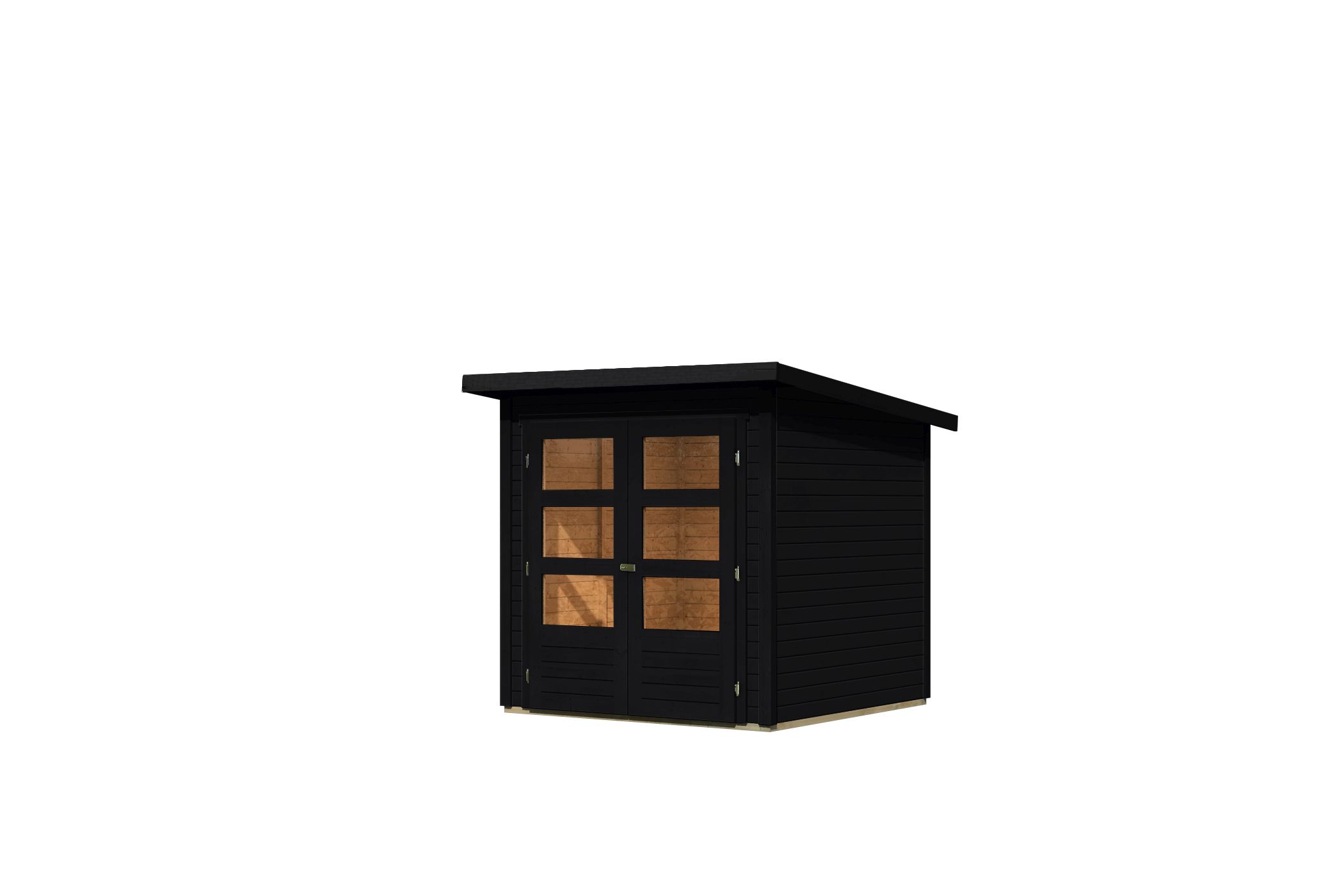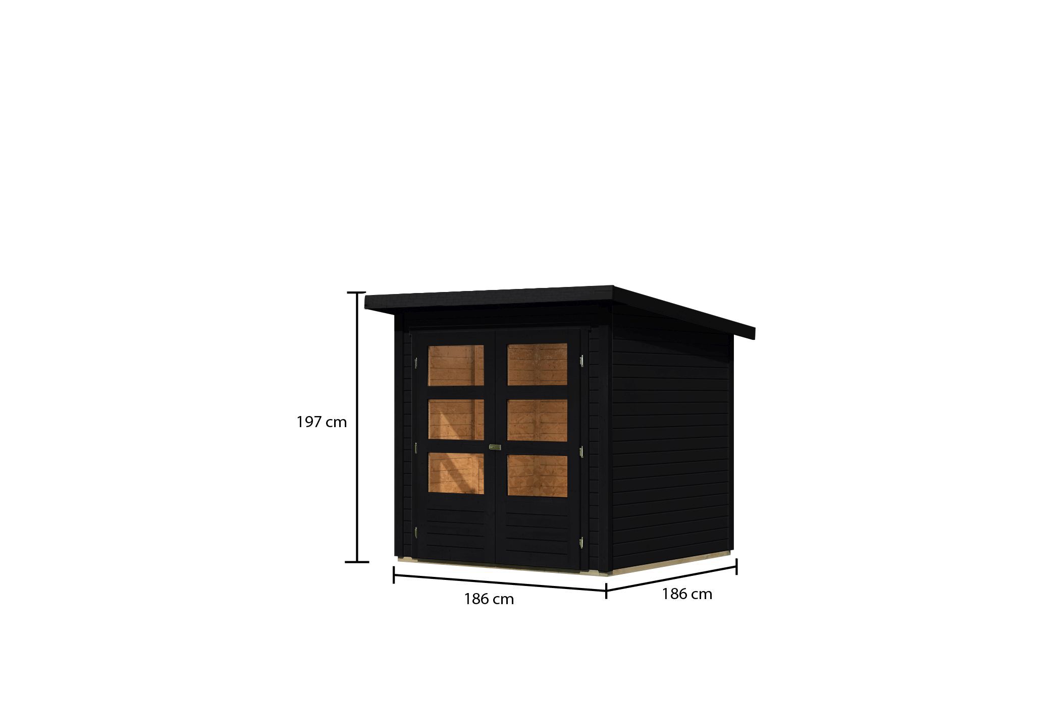 Das Gartenhaus Stockach 2 ist der Hingucker in Ihrem Garten. Das 19 mm Haus überzeugt durch sein modernes Pultdach mit einer Dachfläche von 4,3 m² und den unkomplizierten Look. Dadurch hat es kein Problem sich in seine Umgebung einzufügen und passt bestimmt auch in Ihr Gartenambiente. Das Gartenhaus besteht aus nordischem Fichtenholz und wird mithilfe eines Steck- und Schraubsystems aufgebaut. Dies ermöglicht eine einfache und schnelle Montage ohne großes handwerkliches Geschick. Das Haus ist in modernem Terragrau, Schwarz und in Naturbelassen zur eigenen Gestaltung erhältlich. So bleibt es bei Ihnen wie Sie Ihr Gartenhaus Stockach gestalten und einrichten. In das Innere des Gartenhauses gelangen Sie durch eine Doppelflügeltür mit drei Lichtausschnitten pro Türflügel. Gesichert wird das Haus mit eine Sicherheitsüberfalle. Durch die Lichtausschnitte gelangt viel Tageslicht ins Innere und lässt das Haus somit nicht nur von außen strahlen. Mit einem Außenmaß von (BxT) 186 x 186 cm bietet es viel Platz für Ihre Gartenmöbel oder Gartengeräte. Das Gartenhaus wird durch kesseldruckimprägnierte Bodenbalken vor aufsteigender Feuchtigkeit geschützt. Ob als Rückzugsort im eigenen Garten oder als Unterstellmöglichkeit für Gartengerät, dass Gartenhaus Stockach 2 bietet Ihnen viele Möglichkeiten.