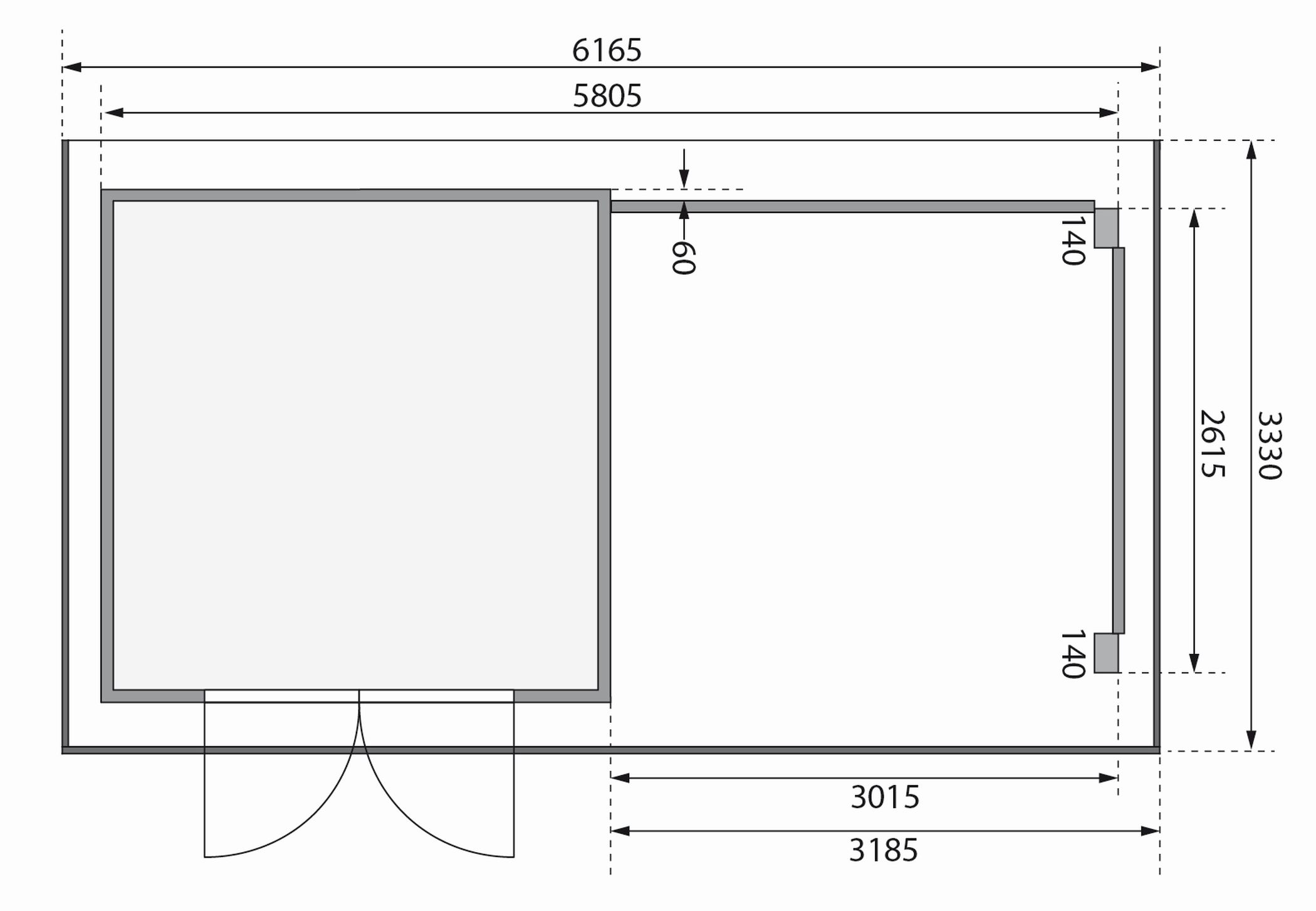 Hinweis: Fußboden und Dacheindeckung optional erhältlich (nicht im Lieferumfang des Hauses enthalten)!