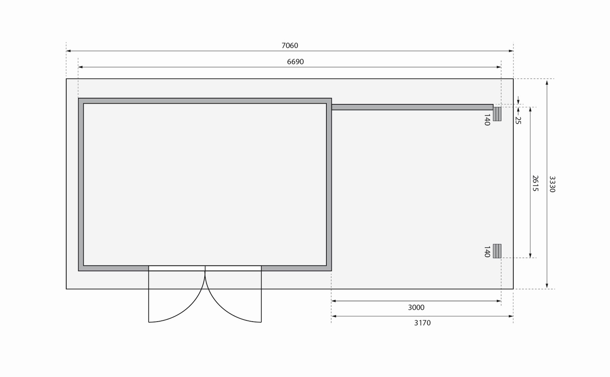 Hinweis: Fußboden und Dacheindeckung optional erhältlich (nicht im Lieferumfang des Hauses enthalten)!